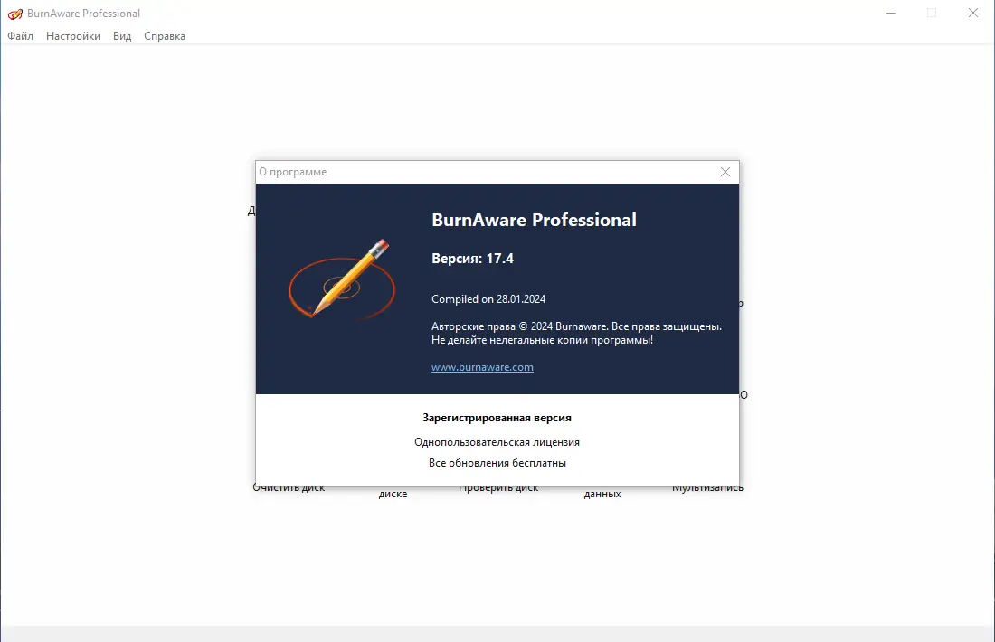 BurnAware — это мощный и в тоже время простой в использовании инструмент для записи всех типов дисков: CD, DVD, Blu-Ray и HD-DVD. Поддержка мультисессий, создание образов, клонирование и копирование дисков делают программу универсальным решением для домашних и профессиональных задач. Встроенная поддержка различных языков интерфейса, включая русский, позволяет легко работать с программой на любом языке. Возможность работы с образами и сохранения данных делает BurnAware оптимальным выбором для тех, кто ищет надежное решение для записи и копирования.