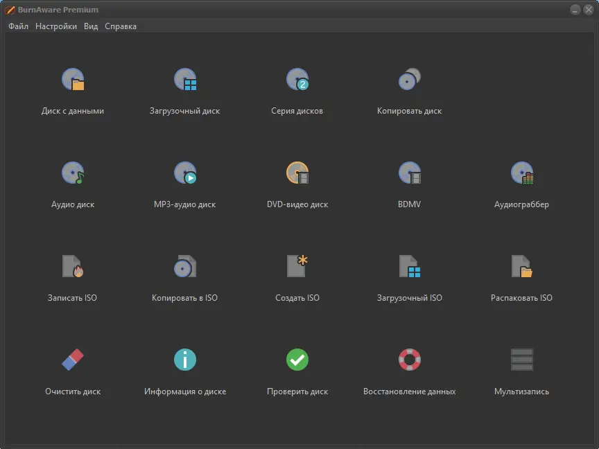 BurnAware — многофункциональная программа для записи и копирования любых типов дисков, включая CD, DVD, Blu-Ray и HD-DVD. Обеспечивает быстрый и надежный прожиг образов, создание мультисессионных дисков, а также копирование и клонирование носителей с возможностью добавления фотографий, фильмов, музыки и документов.