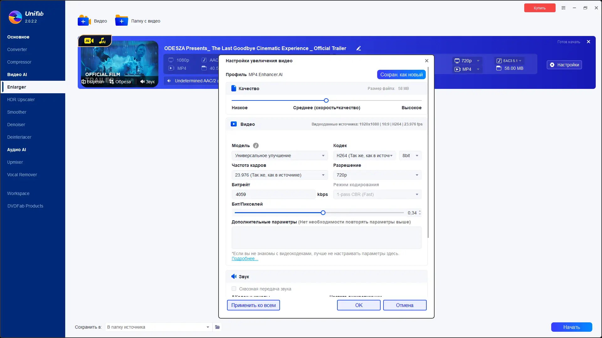 DVDFab — многофункциональный инструмент, который сочетает мощные технологии AI для автоматического улучшения качества мультимедийного контента и поддержку широкого спектра форматов. Он подходит для профессионалов и любителей, требующих высоких стандартов обработки видео и аудио.