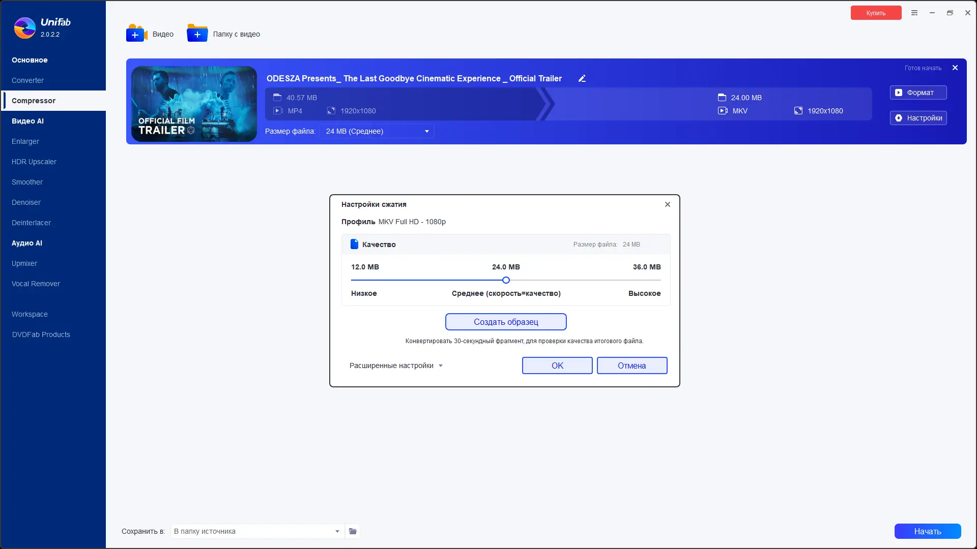 - Конвертация или сжатие более 1000 аудио и видео форматов с настройками формата и кодека