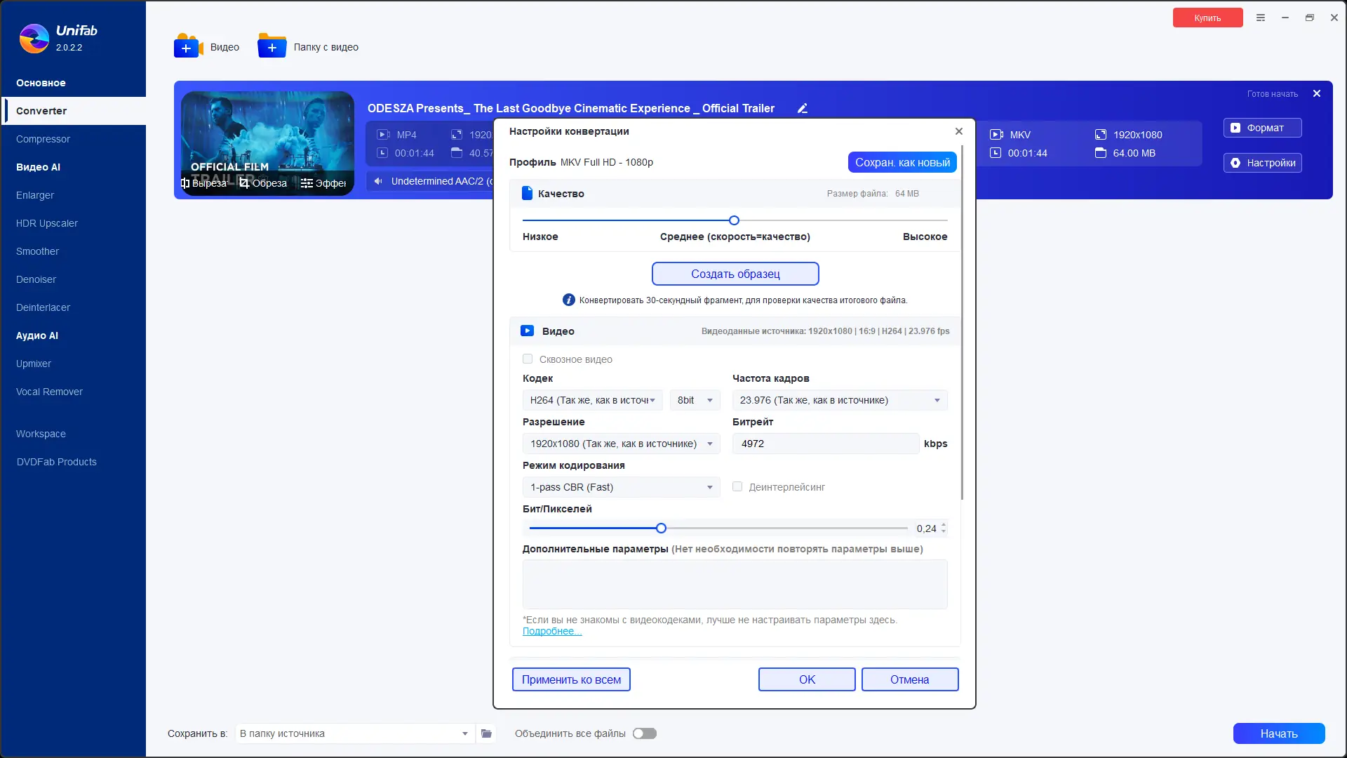 DVDFab представляет собой комплексное решение для обработки мультимедийных файлов. Он не только позволяет конвертировать и сжимать аудио- и видеодорожки, но и автоматические AI-модули значительно повышают качество контента, делая его более четким и насыщенным. Программа состоит из трёх основных разделов: Основной, Видео AI и Аудио AI, а также включает шесть уникальных модулей, таких как Video Converter, Video Enlarger AI, HDR Upscaler AI и другие. Благодаря многофункциональности и поддержке более 1000 форматов, DVDFab обеспечивает высокий уровень гибкости и удобства работы, сохраняя исходное качество при любых операциях.