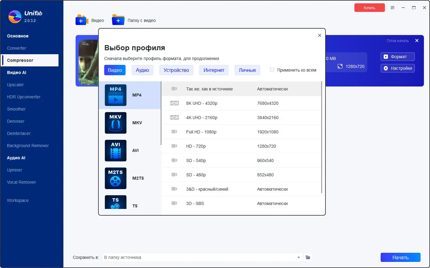 - Поддержка более 1000 форматов и разрешений, включая UHD и 8K