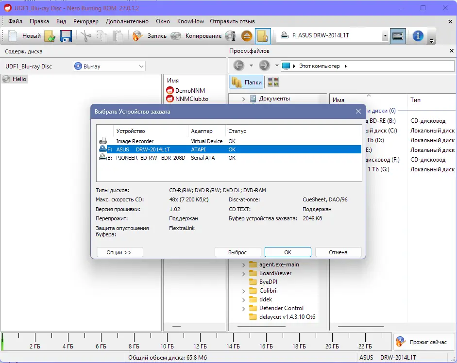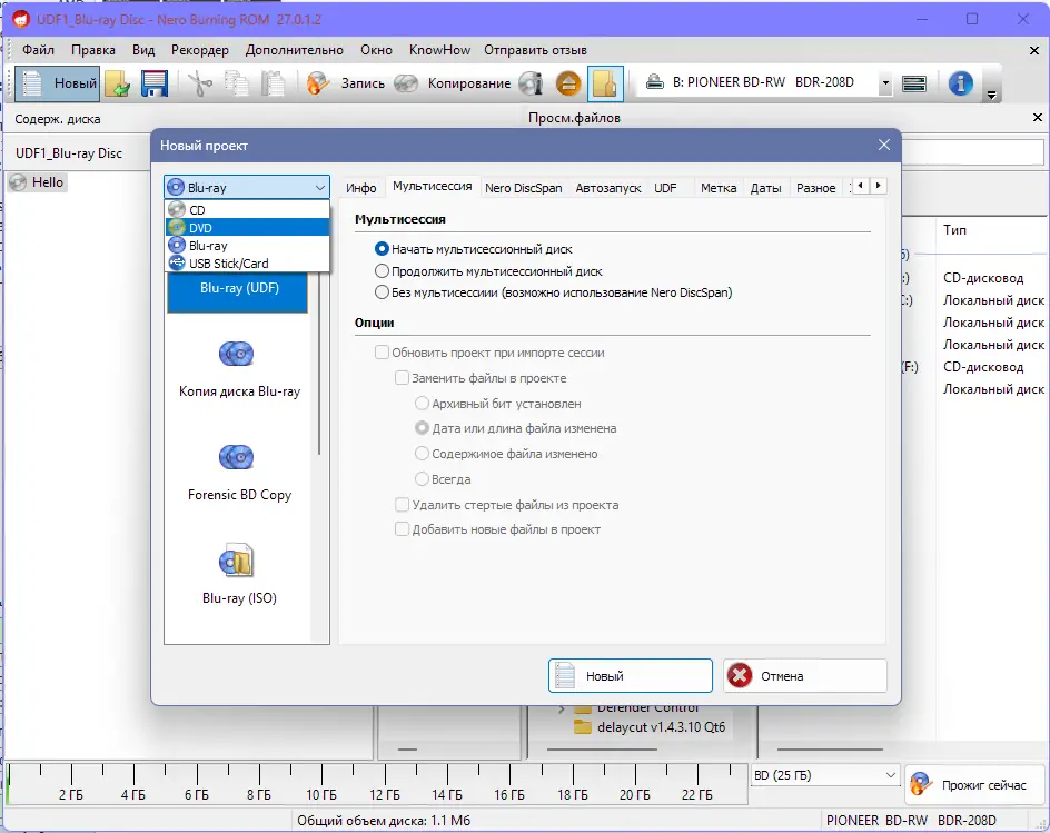 - Поддержка записи дисков различных форматов — CD, DVD, Blu-ray.