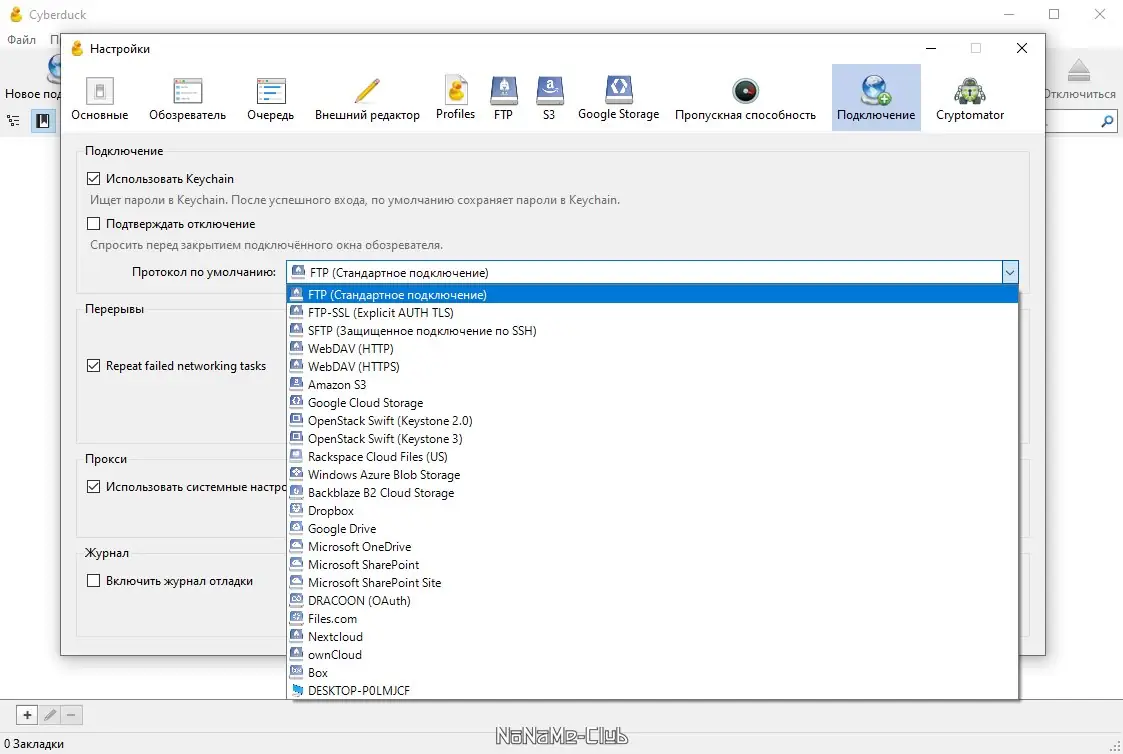 Cyberduck — бесплатный мультифункциональный клиент, предназначенный для подключения к удаленным директориям серверов и облачным хранилищам. Он поддерживает работу с множеством популярных протоколов, таких как FTP, FTP-SSL, SFTP, WebDAV, а также интеграцию с облачными сервисами Amazon S3, Google Cloud Storage, Windows Azure Storage, Rackspace Cloud Files, Backblaze B2, Google Drive и Dropbox. Используя данное программное обеспечение, пользователи избавляются от необходимости устанавливать несколько клиентов для разных платформ и могут управлять файлами на своих серверах и в облаках из одного интерфейса, что значительно повышает эффективность и удобство работы.