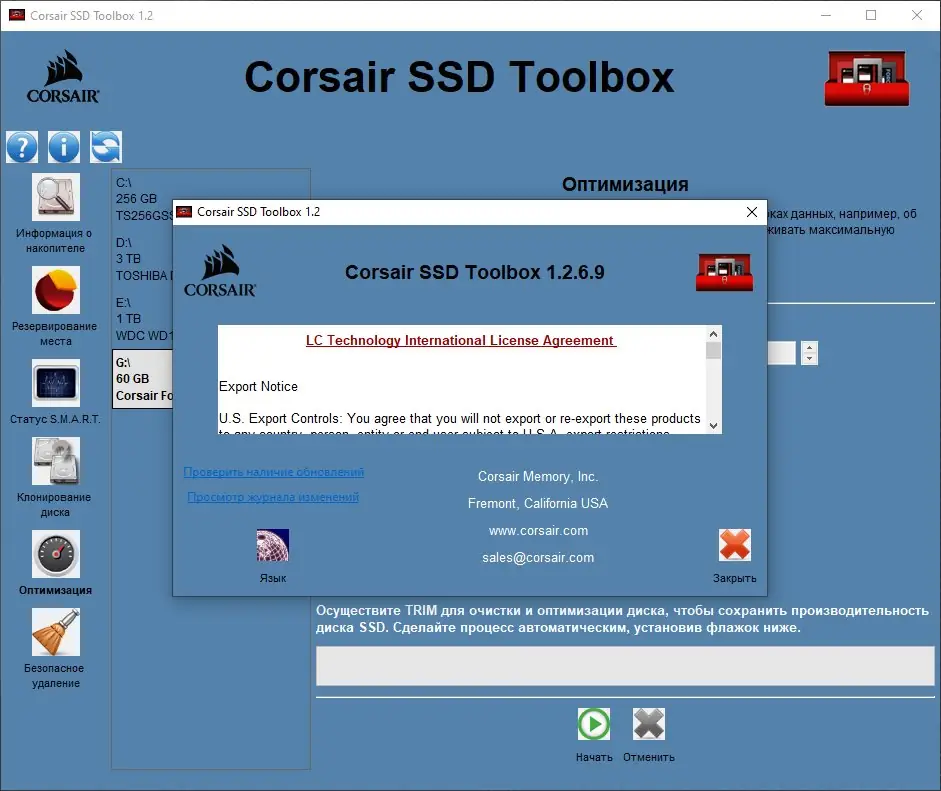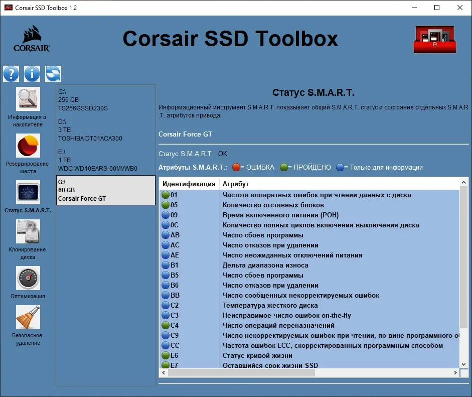 Corsair SSD Toolbox предоставляет пользователям возможность получать подробную информацию о состоянии накопителей, а также осуществлять их диагностику с помощью данных S.M.A.R.T. Аналогично, программа позволяет обновлять прошивку SSD дисков Corsair, что способствует увеличению скорости работы и исправлению возможных ошибок. Среди дополнительных функций — клонирование дисков, настройка выполнения команды TRIM, а также безвозвратное стирание данных. С помощью инструмента можно настроить резервную область, что дополнительно повышает производительность SSD. Программа совместима с операционными системами Windows 7, 8/8.1, 10, 11, а также поддерживает 32 и 64-битные архитектуры.