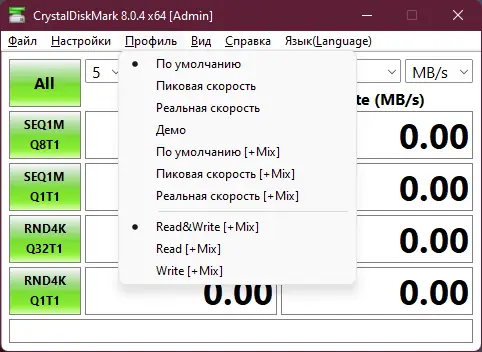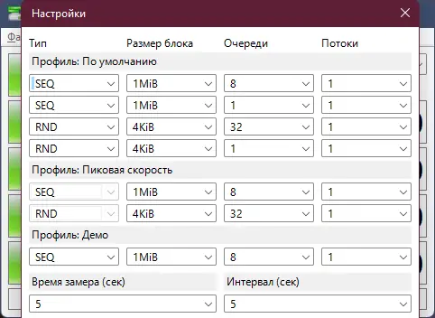 - Запустите программу и выберите необходимые параметры тестирования.