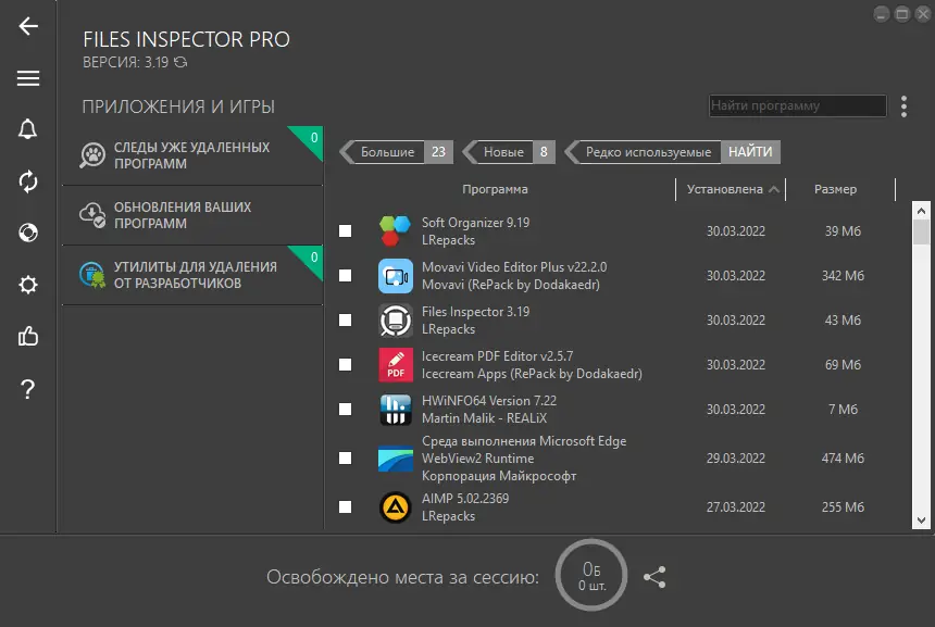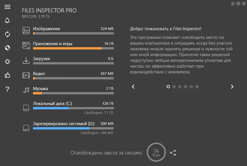 Эта программа предназначена для эффективного выявления и удаления затерявшихся фильмов, загруженных файлов и устаревших программ, которые могут значительно замедлять работу системы или занимать лишнее место на диске. Благодаря интуитивно понятному интерфейсу и мощным инструментам анализа, Files Inspector позволяет быстро определить, какие данные занимают пространство, и безопасно избавиться от них. Также программа обеспечивает работу в различных режимах — удобную экспресс-проверку, расширенный анализ и тихую установку. Поддержка русского языка делает её доступной для широкого круга пользователей, а возможность работы на Windows 7, 8/8.1, 10 и 11 (x32/x64 Bit) позволяет использовать её на большинстве современных компьютеров.
