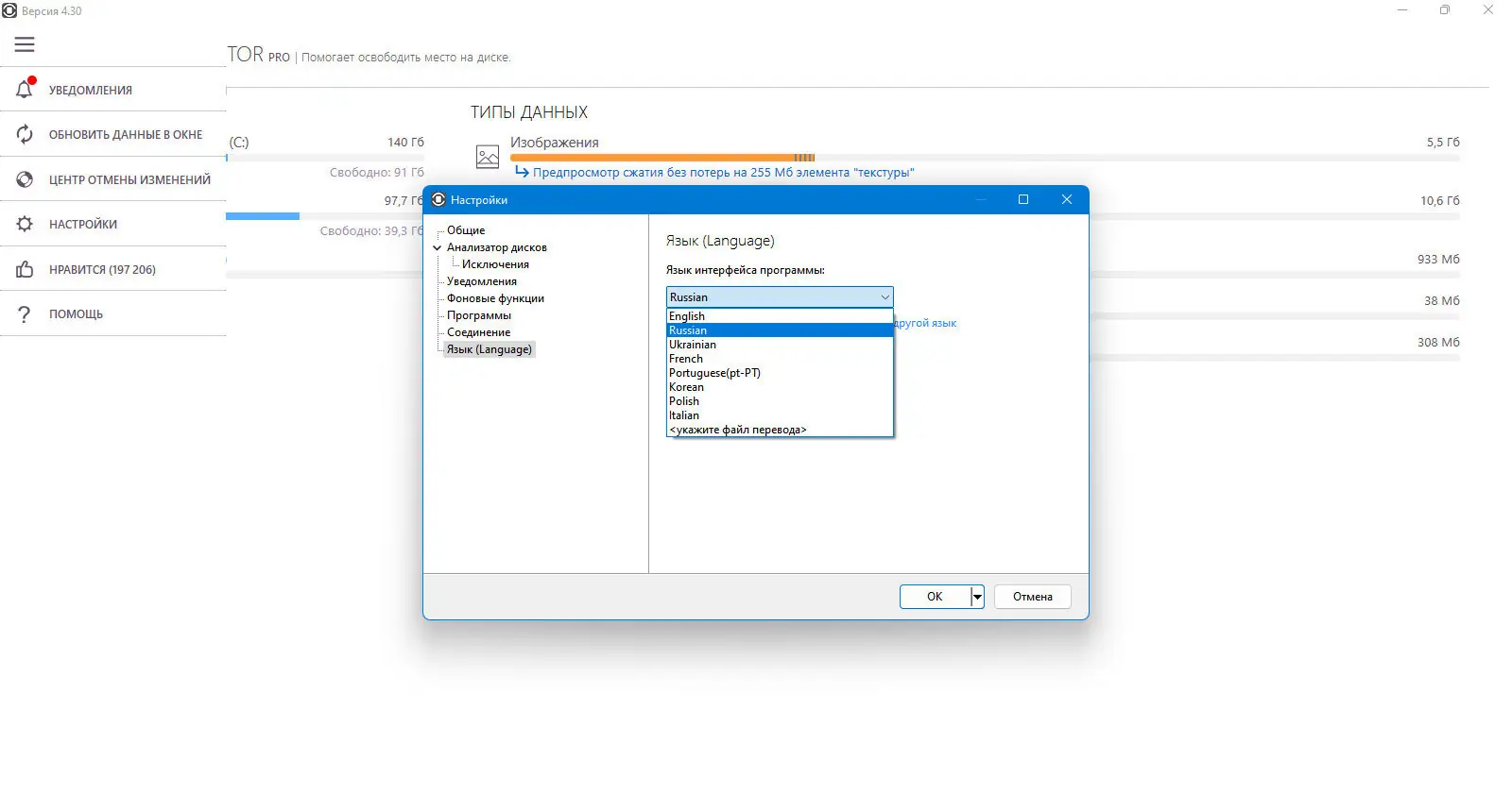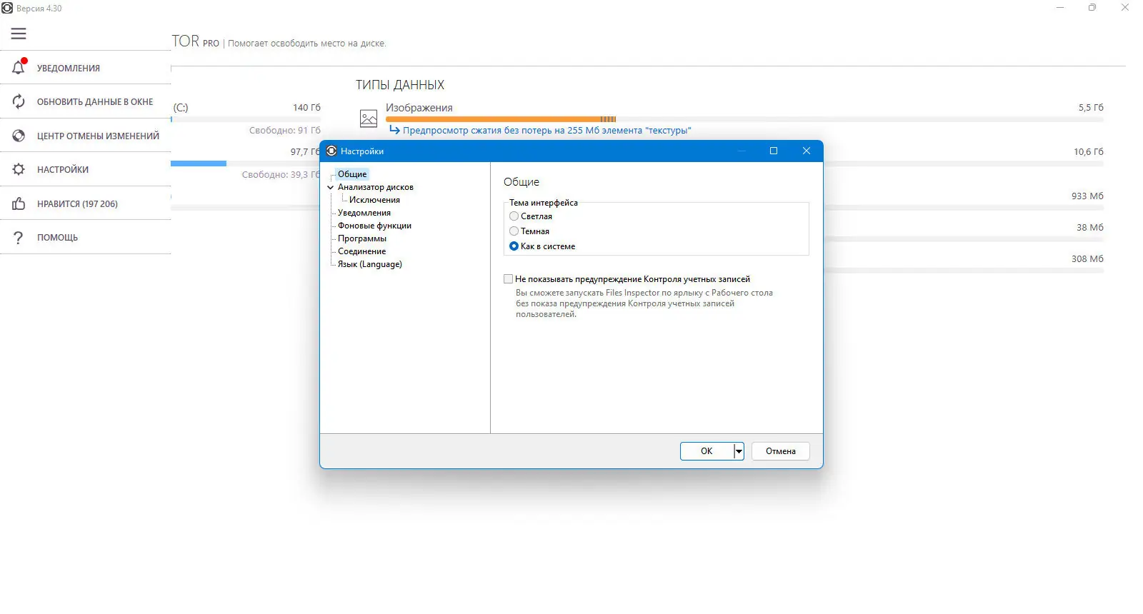 - Быстрый анализ файловой системы: сразу после запуска программа предоставит результаты проверки и оценит, какие данные занимают место.