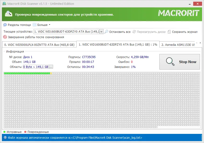 Macrorit Disk Scanner—это мощный инструмент для диагностики жестких дисков, предназначенный для выявления битых секторов и оценки состояния накопителя. Он помогает определить, насколько надежен ваш диск и стоит ли его заменить, основываясь на количестве поврежденных секторов. Удобный интерфейс и высокая скорость работы позволяют быстро провести тестирование и принять информированное решение о дальнейших действиях с диском.