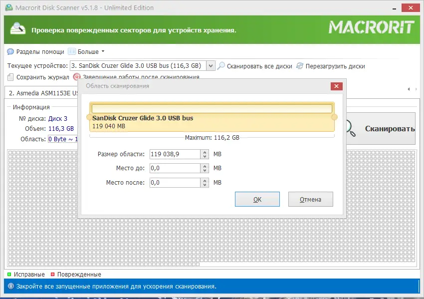 - Отображение состояния каждого секторы — хорошие или поврежденные
