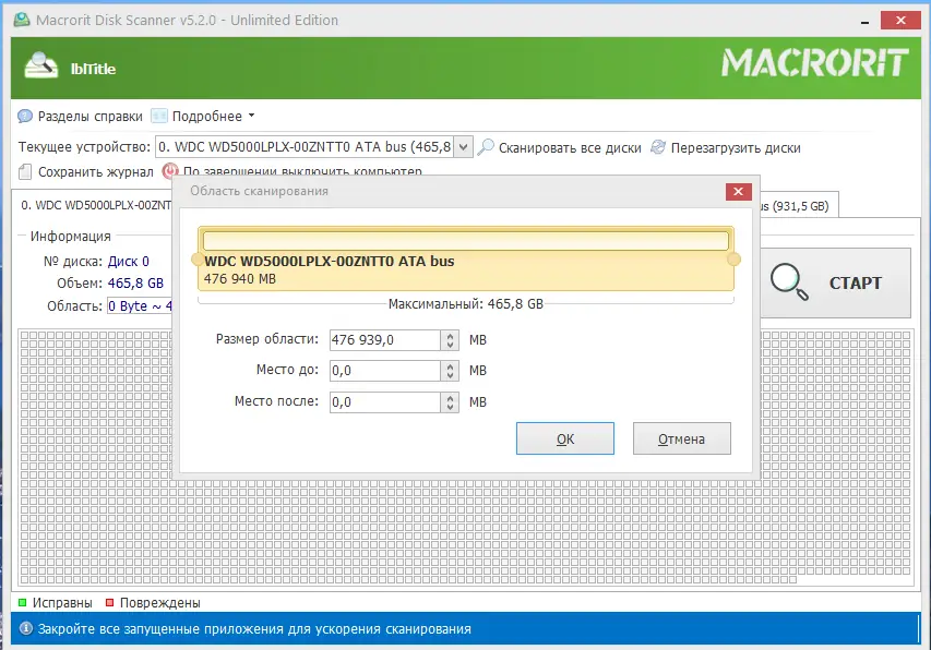 - Отображение хороших и поврежденных секторов для оценки состояния диска