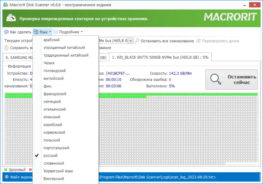 Macrorit Disk Scanner позволяет выполнять глубокое сканирование жестких дисков и SSD на наличие поврежденных секторов. Это важная процедура для тех, кто хочет убедиться в надежности своих накопителей и избежать потери данных. Инструмент показывает хорошие и поврежденные области диска, что облегчает принятие решений о необходимости замены или ремонтирования оборудования.