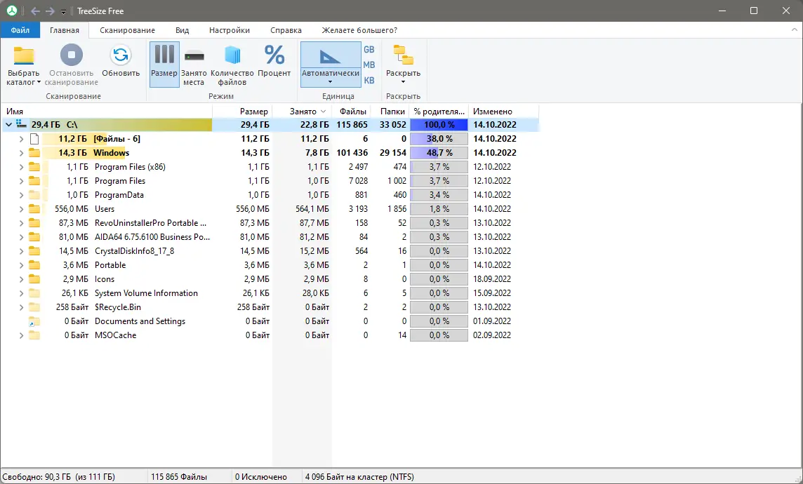 TreeSize — это мощный и бесплатный инструмент для детального анализа использования дискового пространства в системах Windows. Он показывает размеры папок и файлов, что позволяет легко выявить самые «тяжёлые» элементы занимает диском. Поддерживая сканирование подключенных мобильных устройств, сетевых носителей и облачных хранилищ, программа обеспечивает полную картину использования дискового пространства. Благодаря интуитивному интерфейсу и возможностям фильтрации, TreeSize значительно облегчает процедуру очистки и оптимизации жестких дисков.