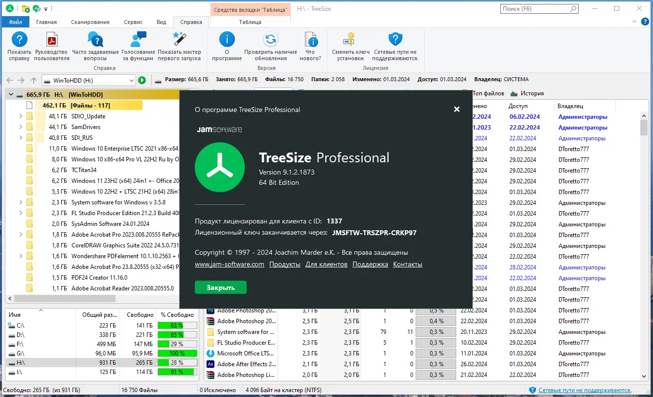 TreeSize предлагает обширный функционал для анализа и управления дисковым пространством, объединяя гибкость, точность и удобство использования.