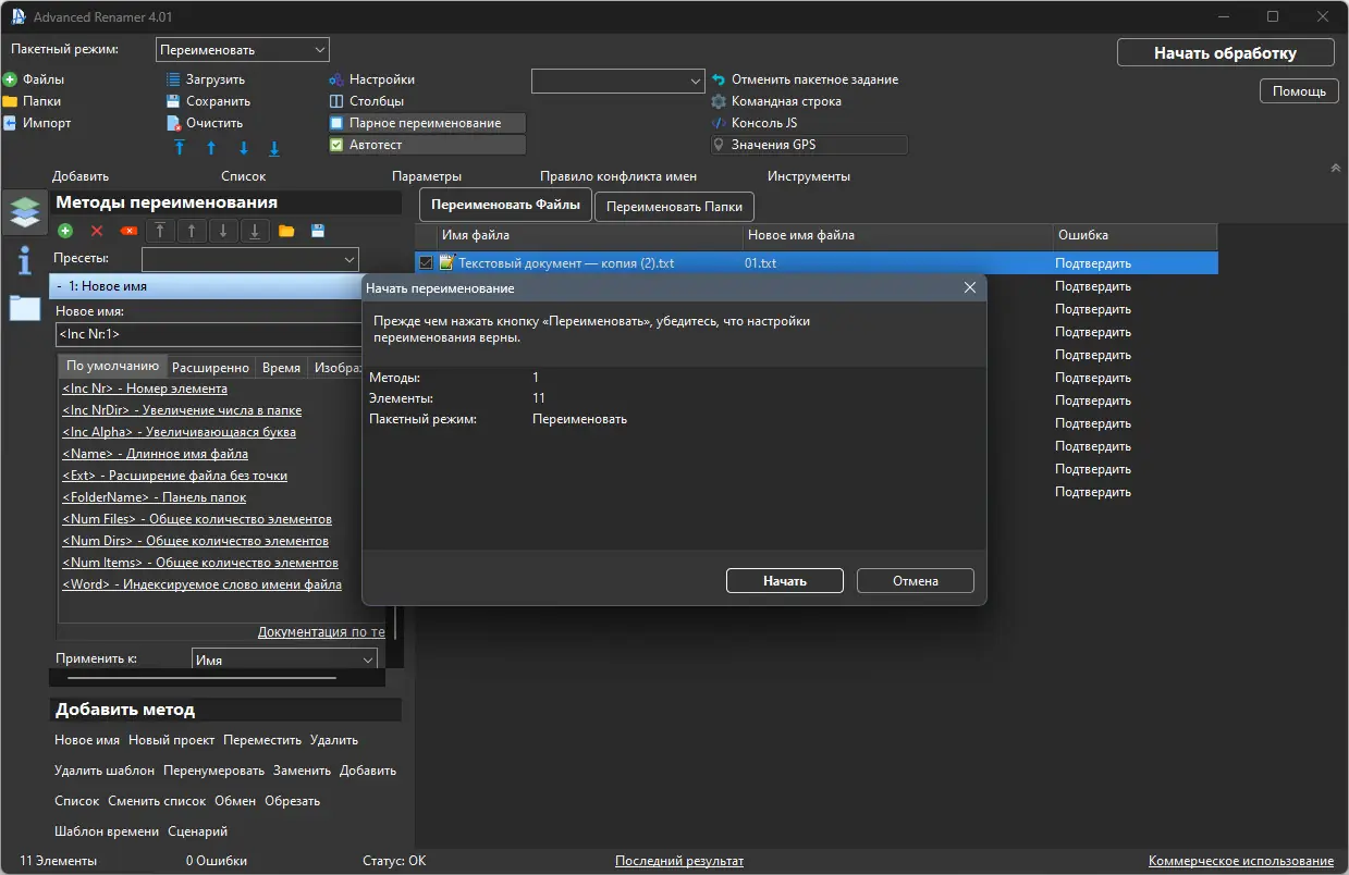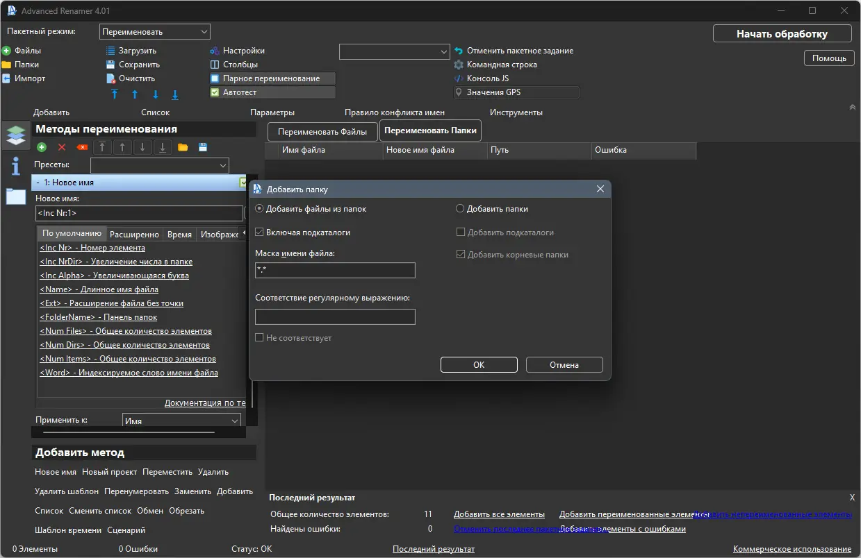 Advanced Renamer — это надежный инструмент для управления файлами, который отличается широкими возможностями и удобством автоматизации процессов переименования. Он подходит как для новичков, так и для опытных пользователей благодаря гибкой настройке и многообразию методов.