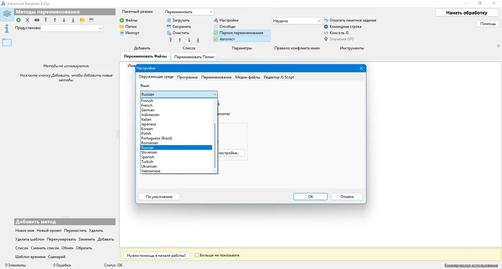 Если тщательно изучить настройки и конфигурации, можно создавать сложные алгоритмы для переименования файлов и папок, применяя до десяти методов одновременно. Программа также позволяет автоматически копировать и переносить элементы по заданным алгоритмам, изменять ID3 информацию музыкальных файлов и работать с изображениями с поддержкой EXIF. Для русскоязычных пользователей есть возможность выбрать интерфейс, поместив файл ru.mo в папку Lang, однако официальной русской локализации не предоставлено, поэтому перевод выполнен самостоятельно и, возможно, содержит неточности.