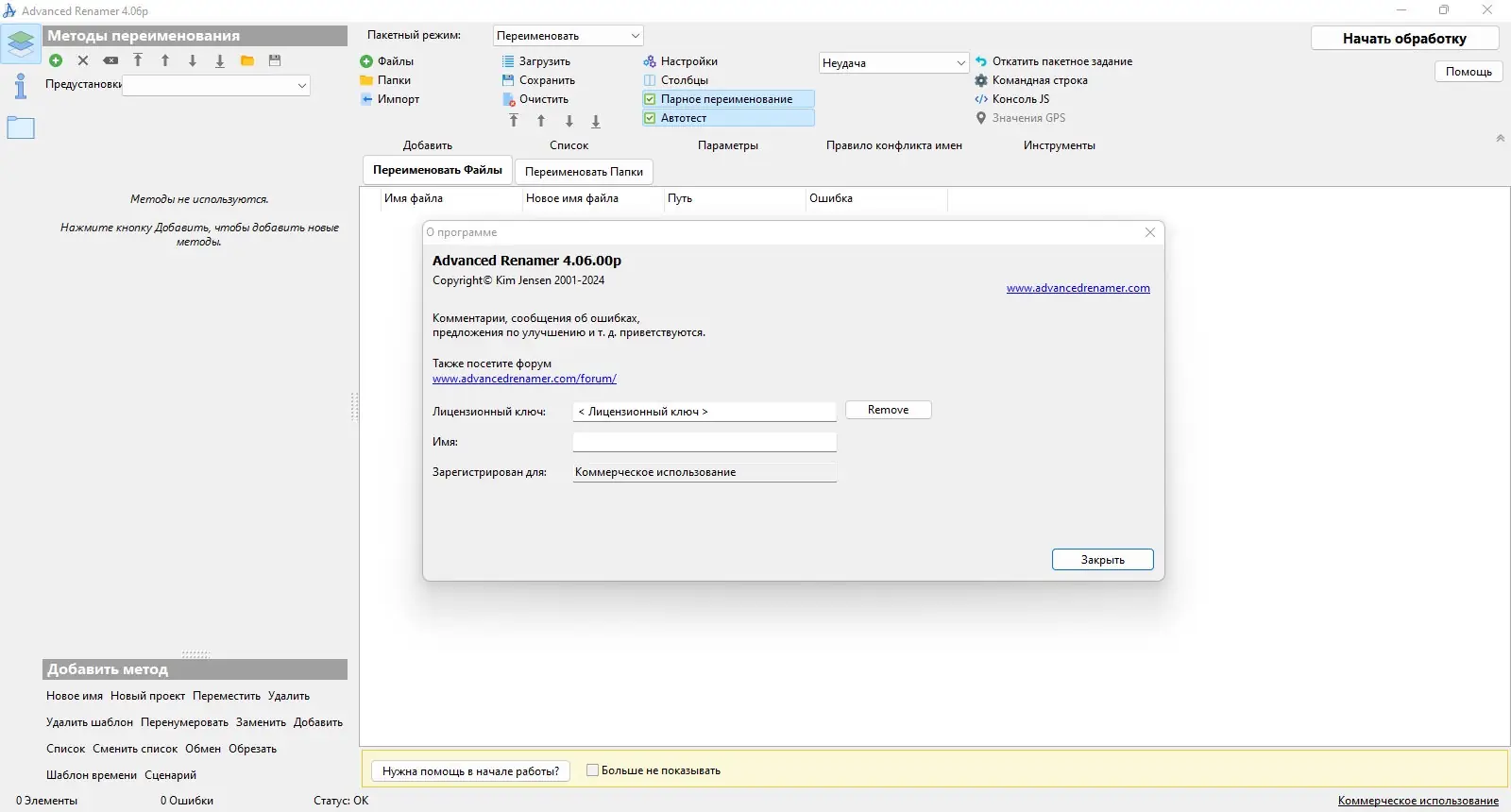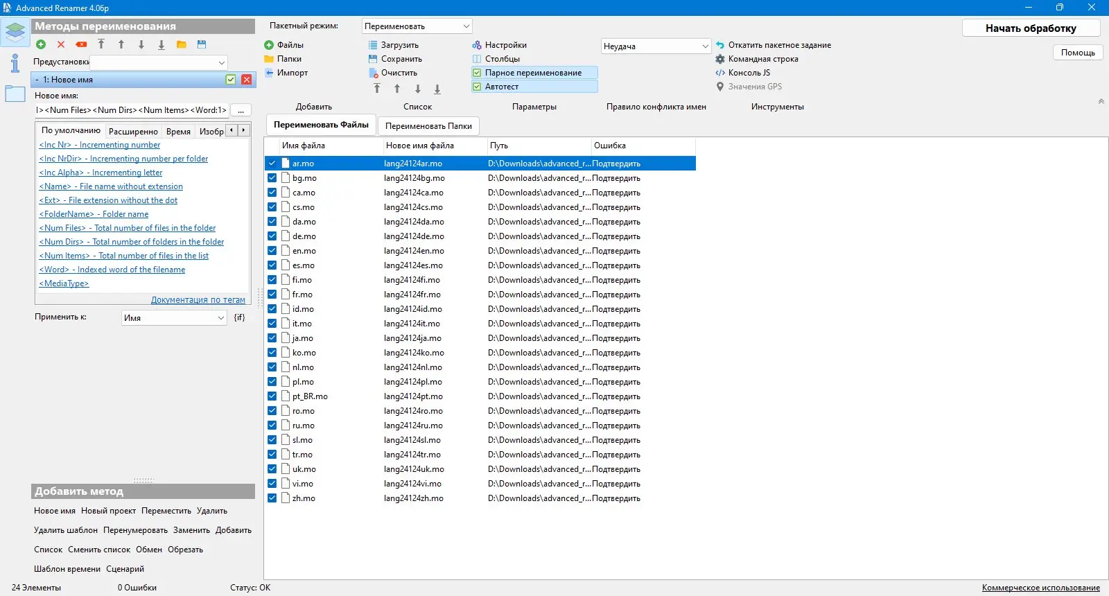 Advanced Renamer — это мощная и бесплатная утилита для массового переименования и систематизации файлов в операционной системе Windows. Благодаря поддержке новых тегов и расширенных алгоритмов, программа позволяет легко и быстро обрабатывать большое количество файлов и папок, создавая единый стиль именования и организовывая файлы по заданным правилам. Удобный интерфейс и множество встроенных методов позволяют настроить процесс переименования под конкретные требования, экономя время и снижая риск ошибок.