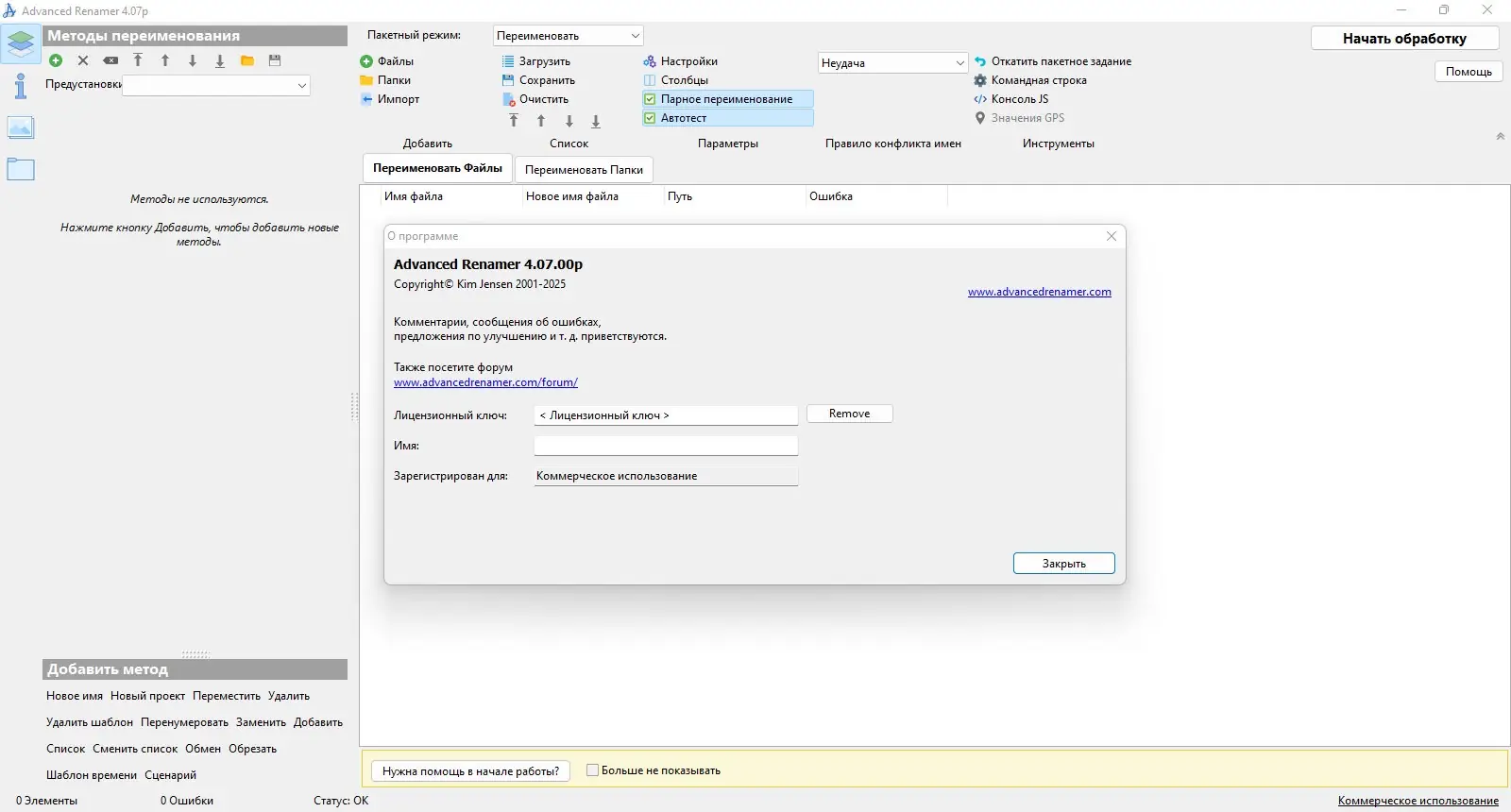 Advanced Renamer — это удобное и универсальное решение для автоматизации массового переименования файлов. Благодаря множеству встроенных методов и поддержке различных форматов, программа позволяет значительно сократить время на рутинные операции.