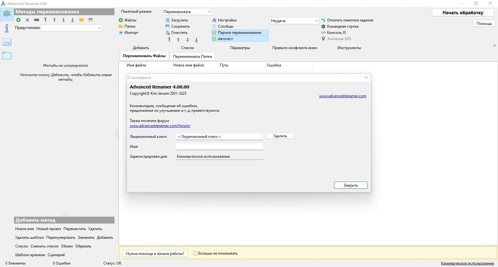 Advanced Renamer представляет собой универсальный инструмент с продуманным интерфейсом и широкими возможностями автоматизации. Он отлично подойдёт для тех, кому необходимо переименовать большое количество файлов быстро и точно. Благодаря поддержке различных форматов и тегов, программа универсальна и подходит для работы с мультимедийными файлами, изображениями и другими типами данных.