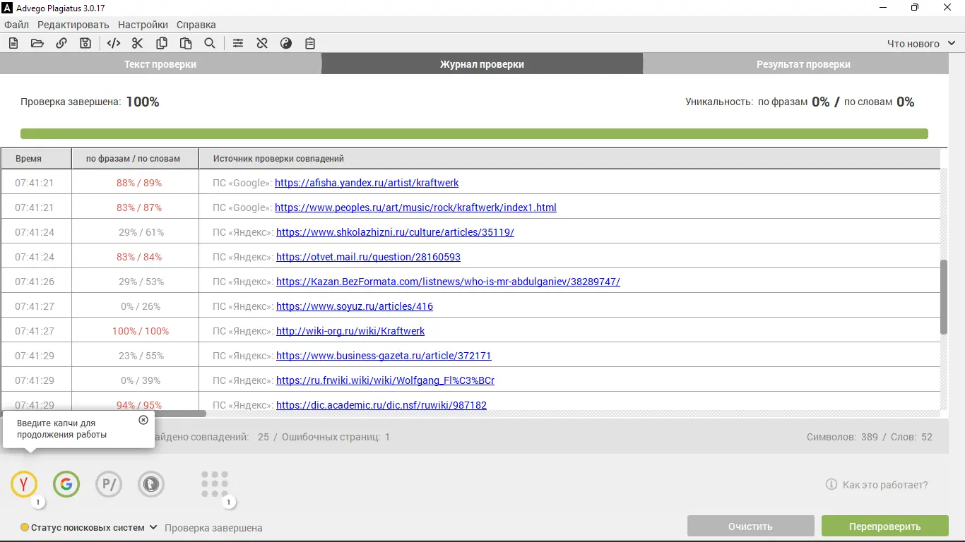 Advego Plagiatus — программа для быстрого поиска частичных и полных копий текстов в интернете, обладающая интуитивным интерфейсом и возможностью определения степени оригинальности и источников источников. Она эффективно помогает выявлять плагиат и проверять уникальность документов и URL.