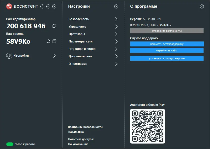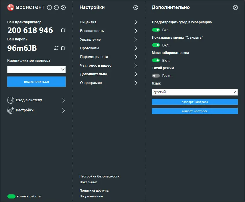 Ассистент — это высокотехнологичный программный продукт российского производства, обеспечивающий безопасный удаленный доступ к компьютерам по локальной сети или через Интернет. Благодаря широким возможностям и простоте использования, он незаменим при выполнении задач, связанных с удаленной работой, администрированием серверов и технической поддержкой. Разработан при содействии ФГБУ «Фонд содействия развитию малых форм предприятий в научно-технической сфере» и зарегистрирован в Едином реестре российских программ для электронных вычислительных машин и баз данных.