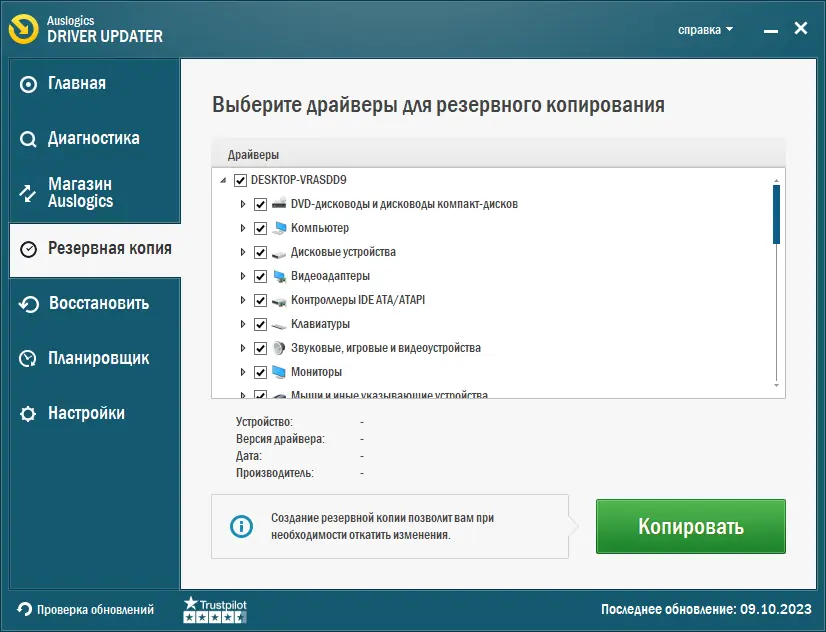 - Обновите драйверы по рекомендациям системы и создайте резервные копии.