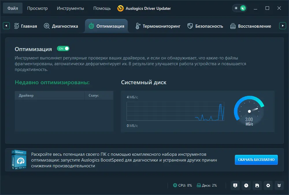 Auslogics Driver Updater – это простая и эффективная программа для быстрого обновления драйверов в операционной системе Windows. Она автоматизирует процесс поиска устаревших драйверов и предлагает их своевременную установку для повышения стабильности и производительности системы.