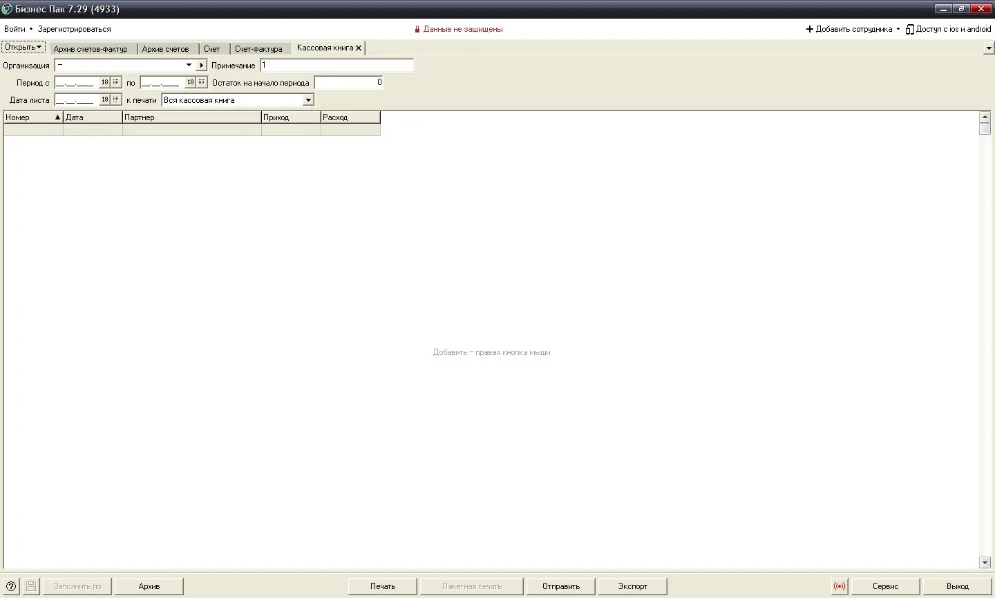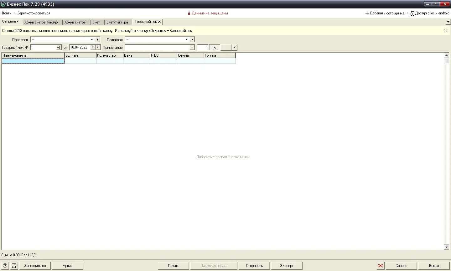 Бизнес Пак 7 — это бесплатная и удобная программа, которая помогает формировать, учитывать и печатать первичные бухгалтерские документы. Оснащена современными возможностями, аналогичными платным бизнес-программам, что делает ее отличным инструментом для тех, кто только начинает вести бизнес или управлять небольшой компанией. Популярность среди начинающих бизнесменов подтверждает ее надежность и удобство использования. Программа легко освоится даже у новичков и обеспечит полный контроль над учетом документов.
