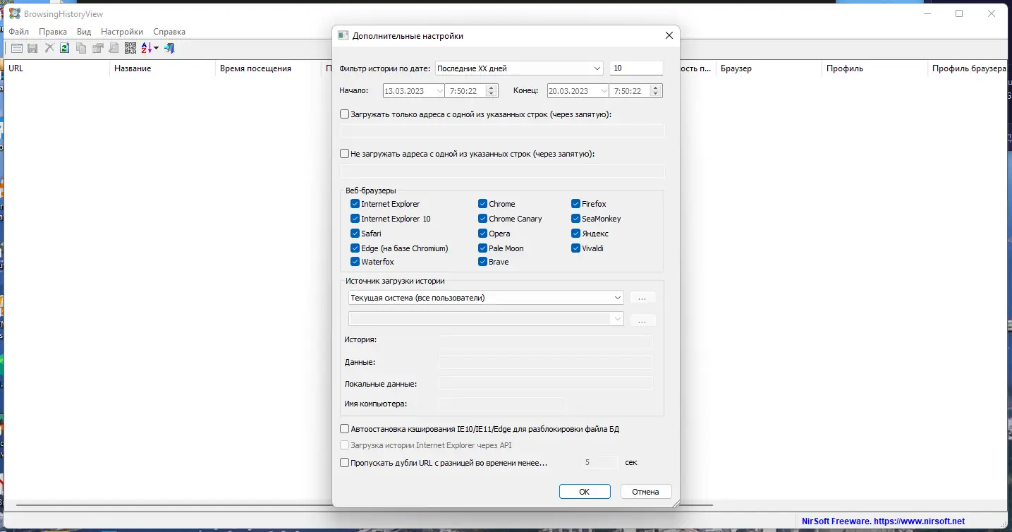 - Получение сводной таблицы истории посещений из нескольких браузеров одновременно