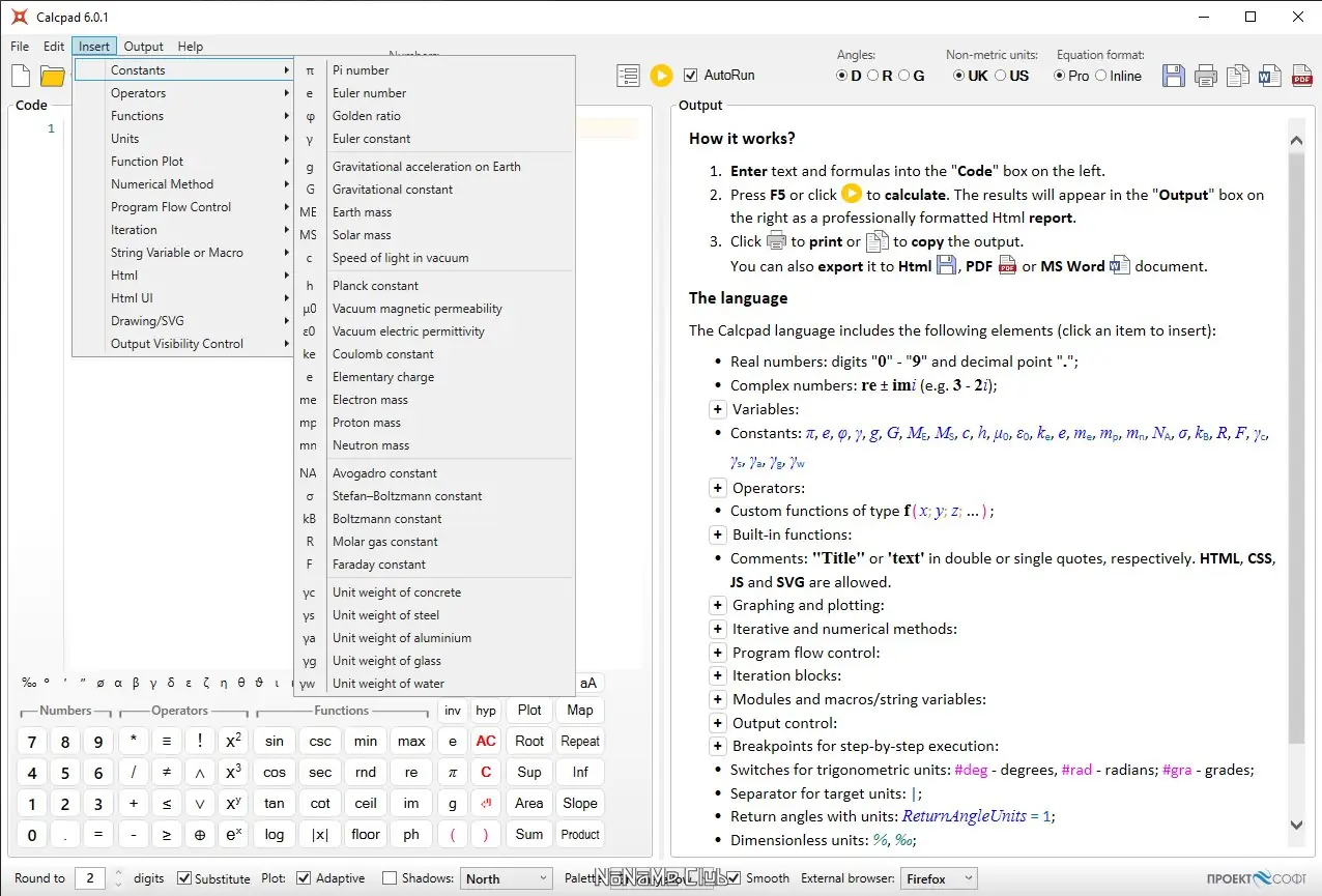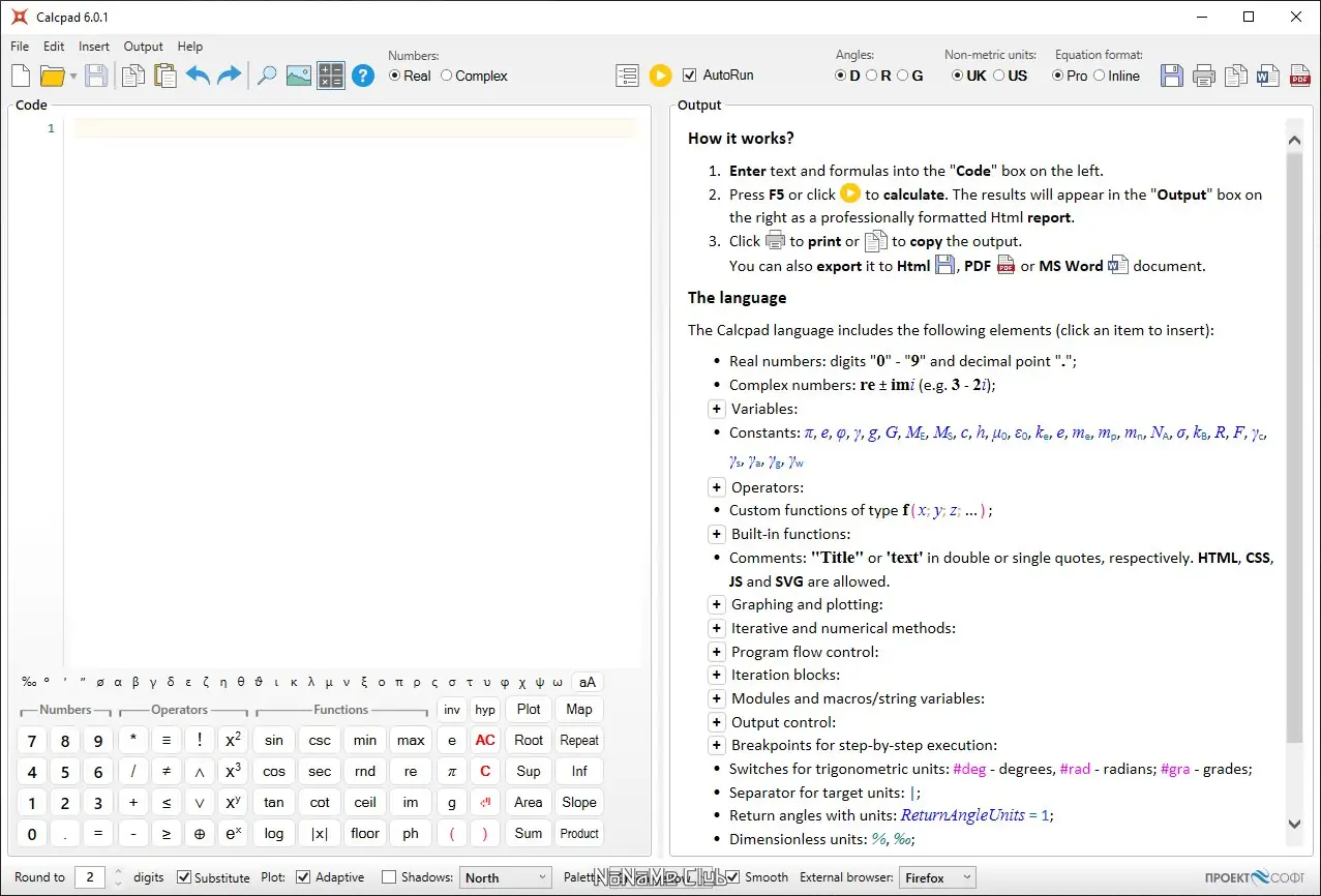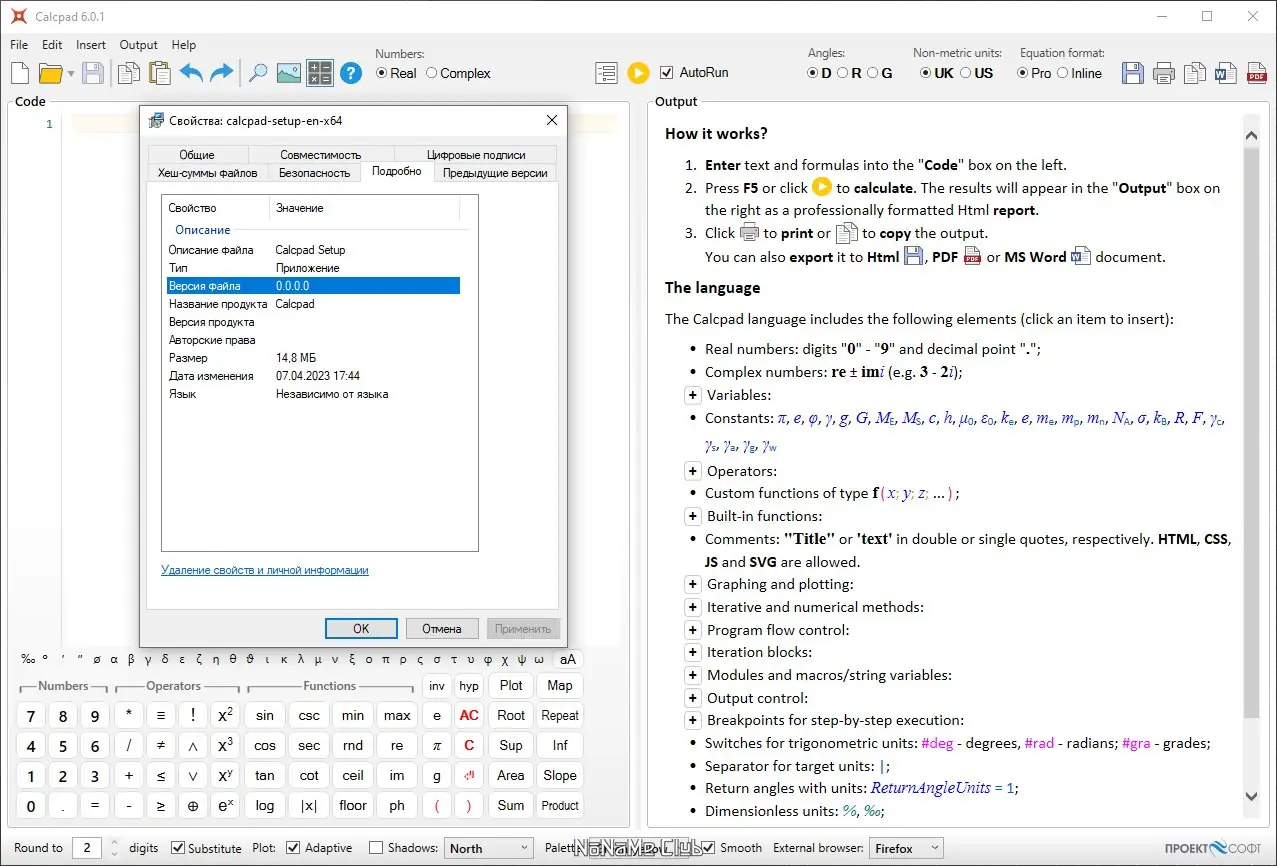 Calcpad — бесплатное, современное программное обеспечение для выполнения математических и инженерных расчетов, обладающее гибким программируемым интерфейсом и возможностью генерации профессиональных HTML-отчетов.