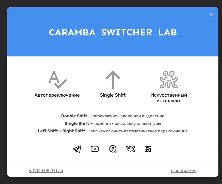 Caramba Switcher — это интеллектуальный автоматический переключатель раскладки клавиатуры, предназначенный для работы с русским, английским и немецким языками. Он помогает повысить эффективность набора текста, автоматически определяя язык вводимого слова и минимизируя ошибки при переключении раскладки.