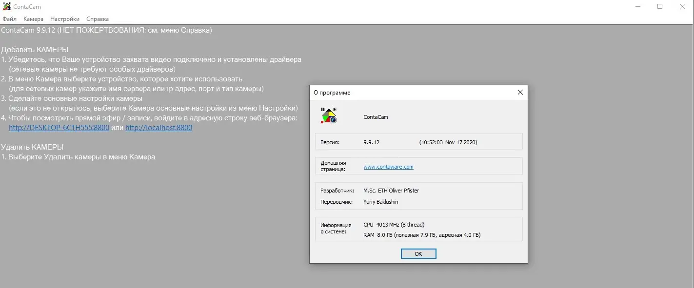 ContaCam — бесплатная программа для системы видеонаблюдения, которая позволяет легко организовать мониторинг различных камер, вести запись и управлять архивами видеоматериалов.