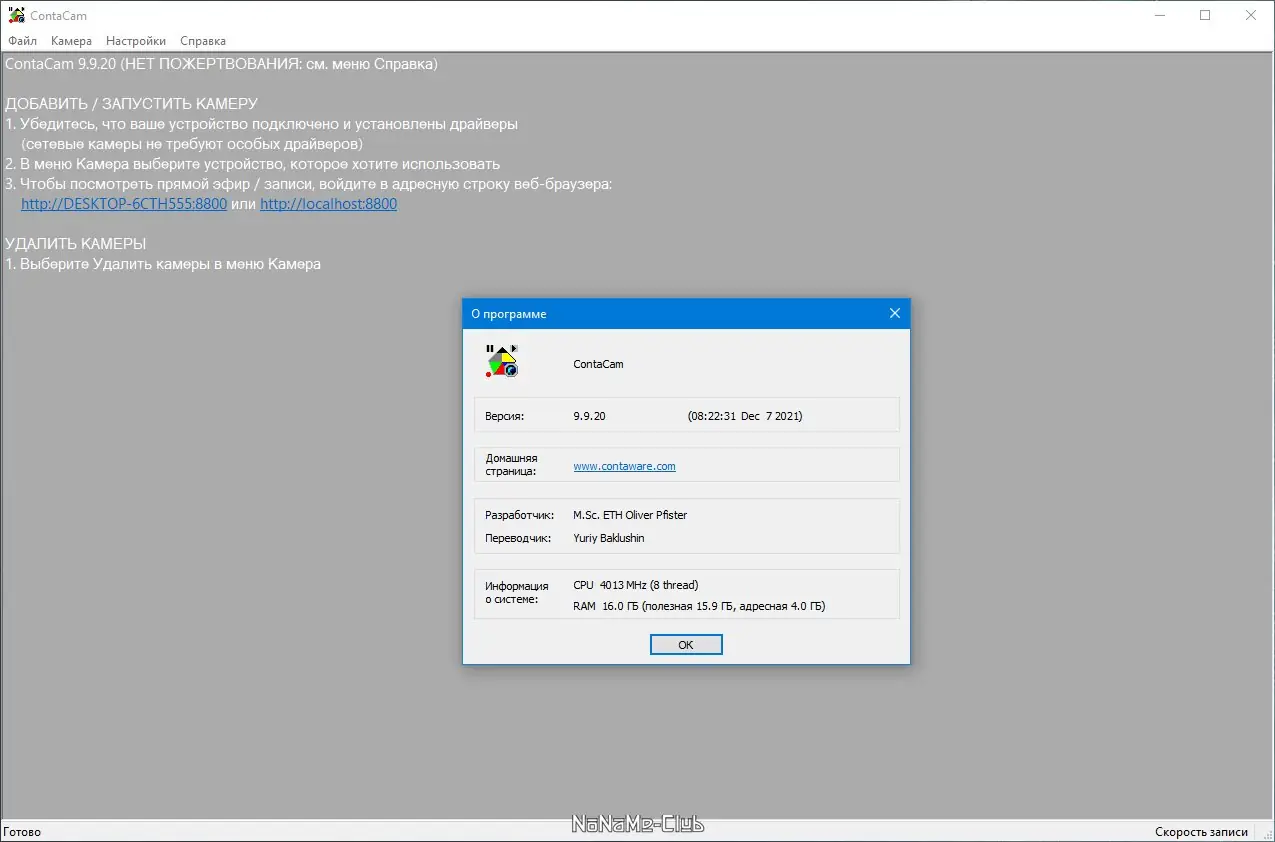 ContaCam – это невероятно простая и бесплатная программа для организации систем видеонаблюдения, предлагающая пользователям множество функций для мониторинга и записи видео. Благодаря поддержке различных устройств, включая веб-камеры, устройства WDM и DV, а также сетевые камеры, она легко интегрируется в любую систему. Программа позволяет вести запись с любой подключенной камеры к компьютеру в реальном времени, а также осуществлять запись в виде миниатюр после обнаружения движения, что помогает экономить пространство на дисках. Еще одна удобная функция – возможность отправки миниатюр по FTP или на электронную почту с поддержкой SSL / TLS или STARTTLS, что обеспечивает безопасность передачи данных.