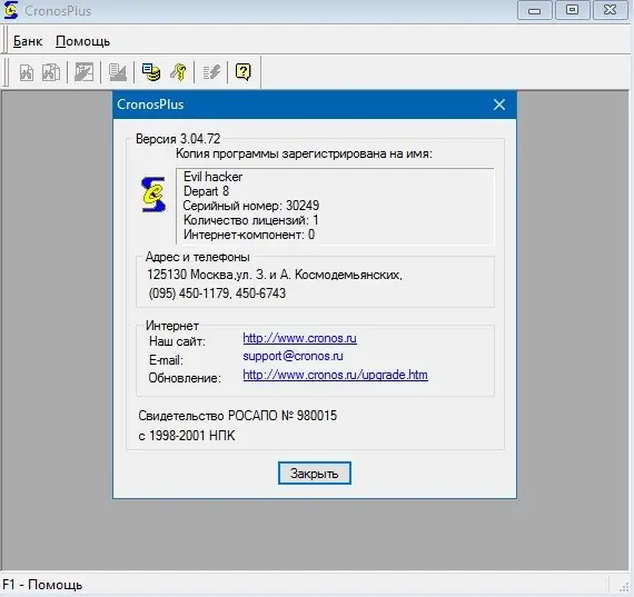 Для корректной работы системы рекомендуется выполнить предварительную регистрацию и настройку системы доступа. После запуска установочного файла необходимо запустить файл Cronos.reg для прописки в системе. В случае отсутствия этого шага программа может работать только один раз без повторной активации.