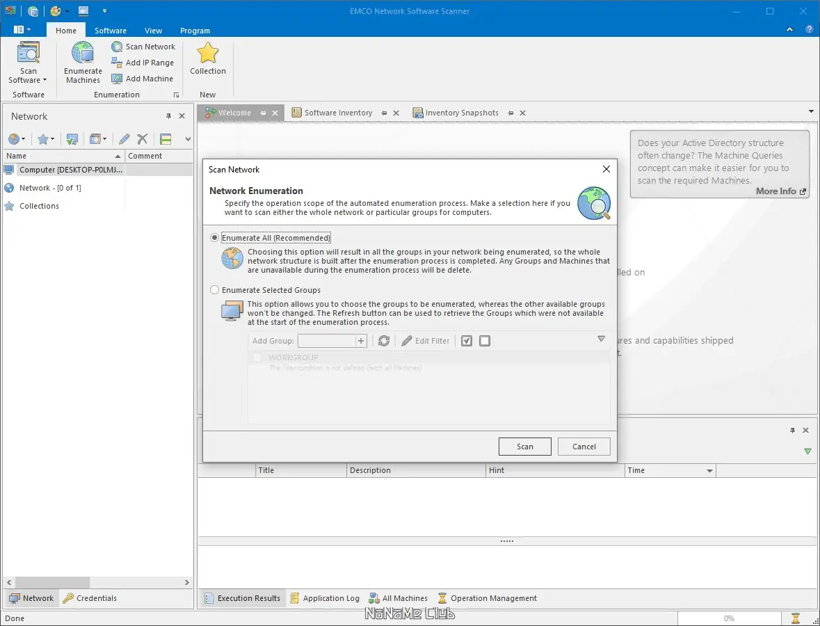 EMCO Network Software Scanner — мощный инструмент для удаленного аудита программного обеспечения в сетях LAN и WAN, предназначенный для быстрого сбора информации о приложениях и обновлениях на компьютерах в сети.