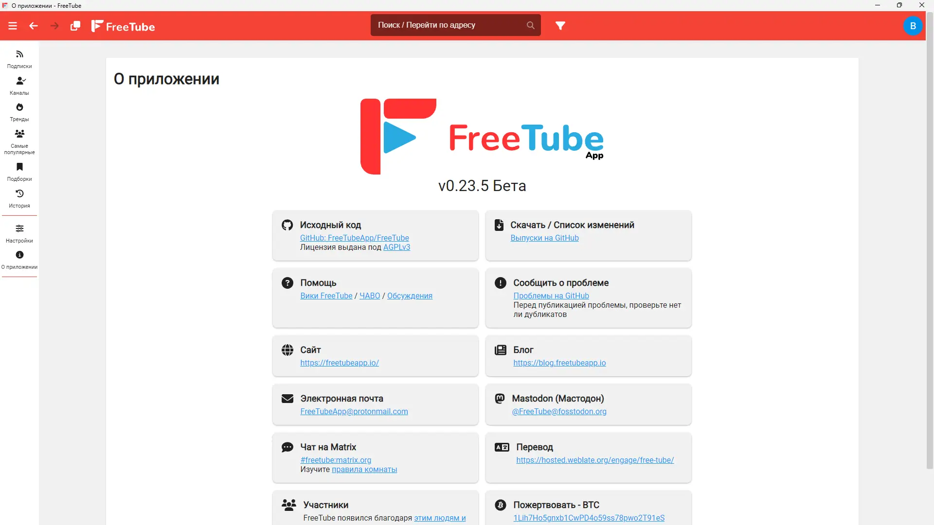 FreeTube является настольным плеером YouTube с открытым исходным кодом, разработанным с учетом защиты конфиденциальности пользователя. Он позволяет смотреть YouTube без рекламы, полностью исключая отслеживание ваших действий Google через файлы cookie и jаvascript. Программа использует собственный HTTP-API и видео воспроизводится с помощью стандартного HTML5 видеоплеера. Ваши подписки, история просмотров и сохраненные видео хранится локально на компьютере, что обеспечивает полный контроль над личными данными. Благодаря расширенным настройкам интерфейса и поддержке работы через прокси, FreeTube предоставляет удобство использования и гарантирует безопасность вашей приватности.