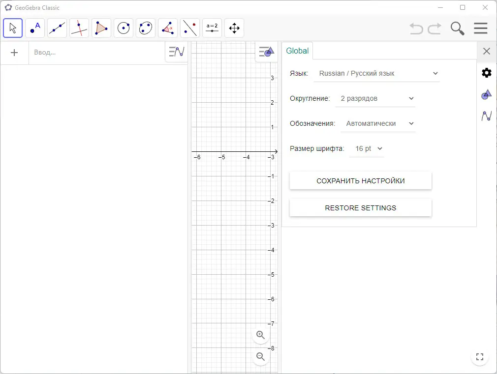 GeoGebra предназначена для работы на большинстве современных Windows-платформ и может функционировать на устройствах с разными характеристиками, что делает её универсальным инструментом как для школьников, так и для профессионалов.