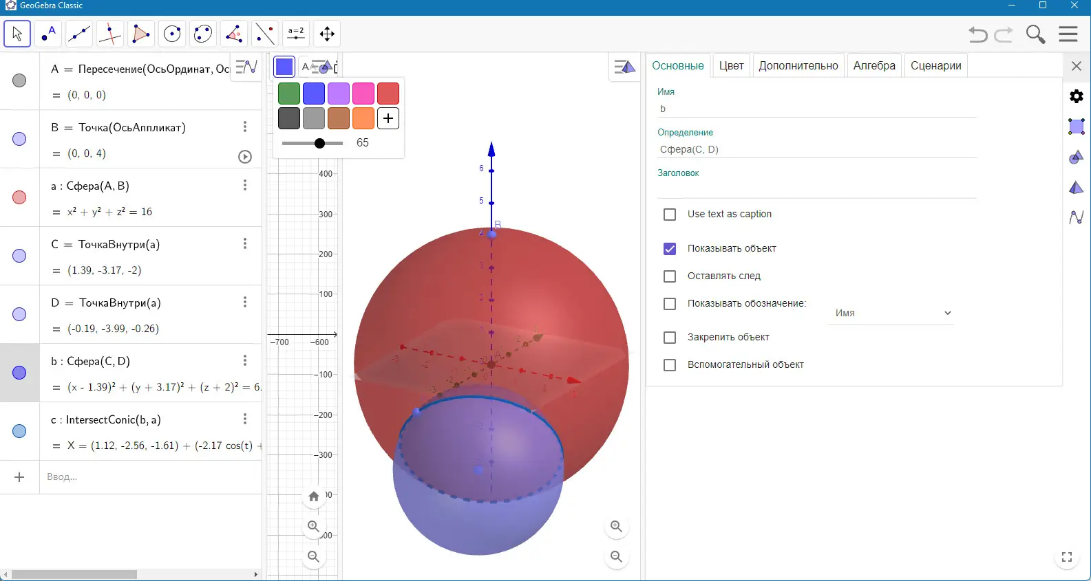 - Создание конических сечений: окружности, эллипса, параболы и гиперболы