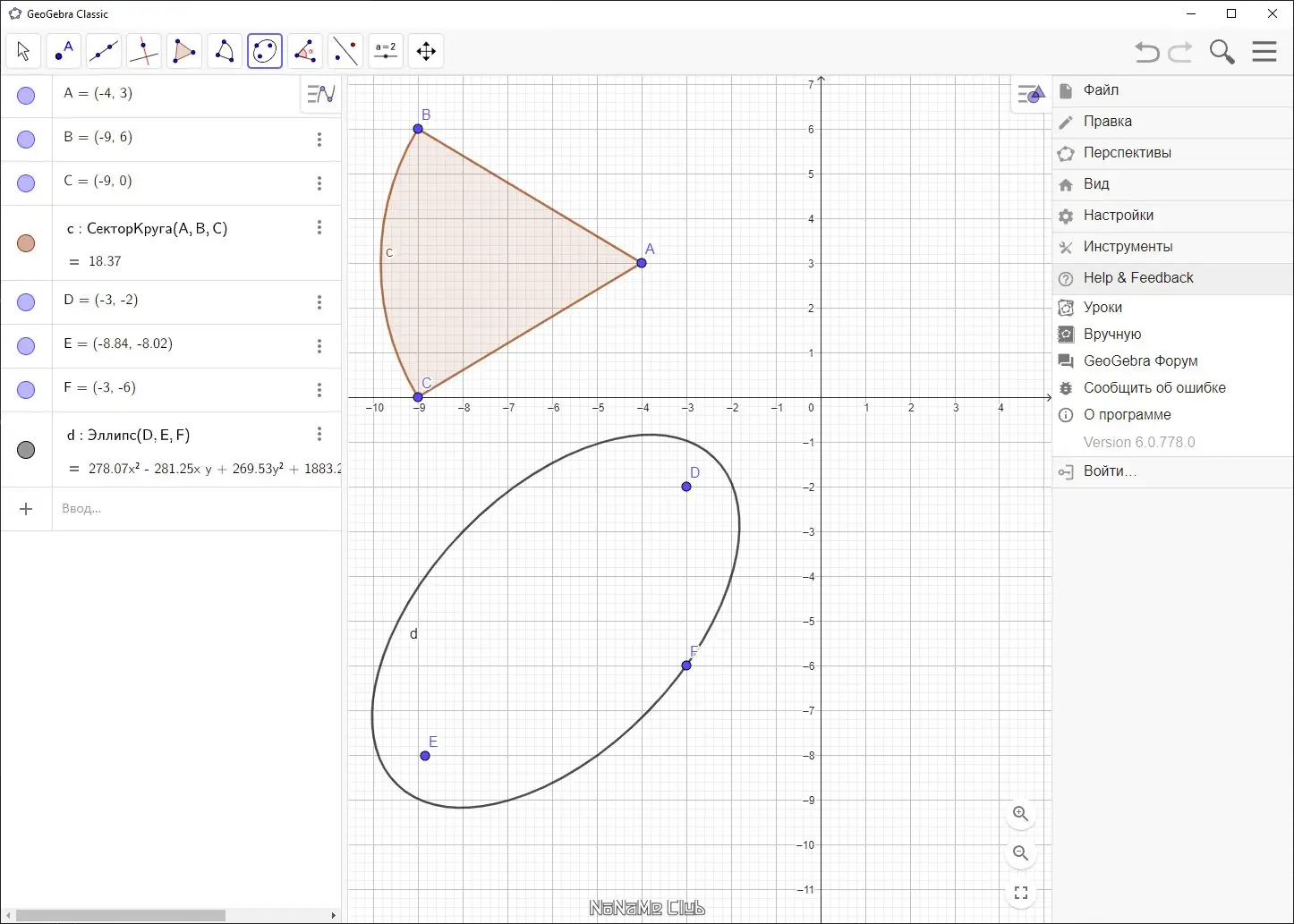 - Работа с коническими сечениями, такими как окружность, эллипс, парабола и гипербола.
