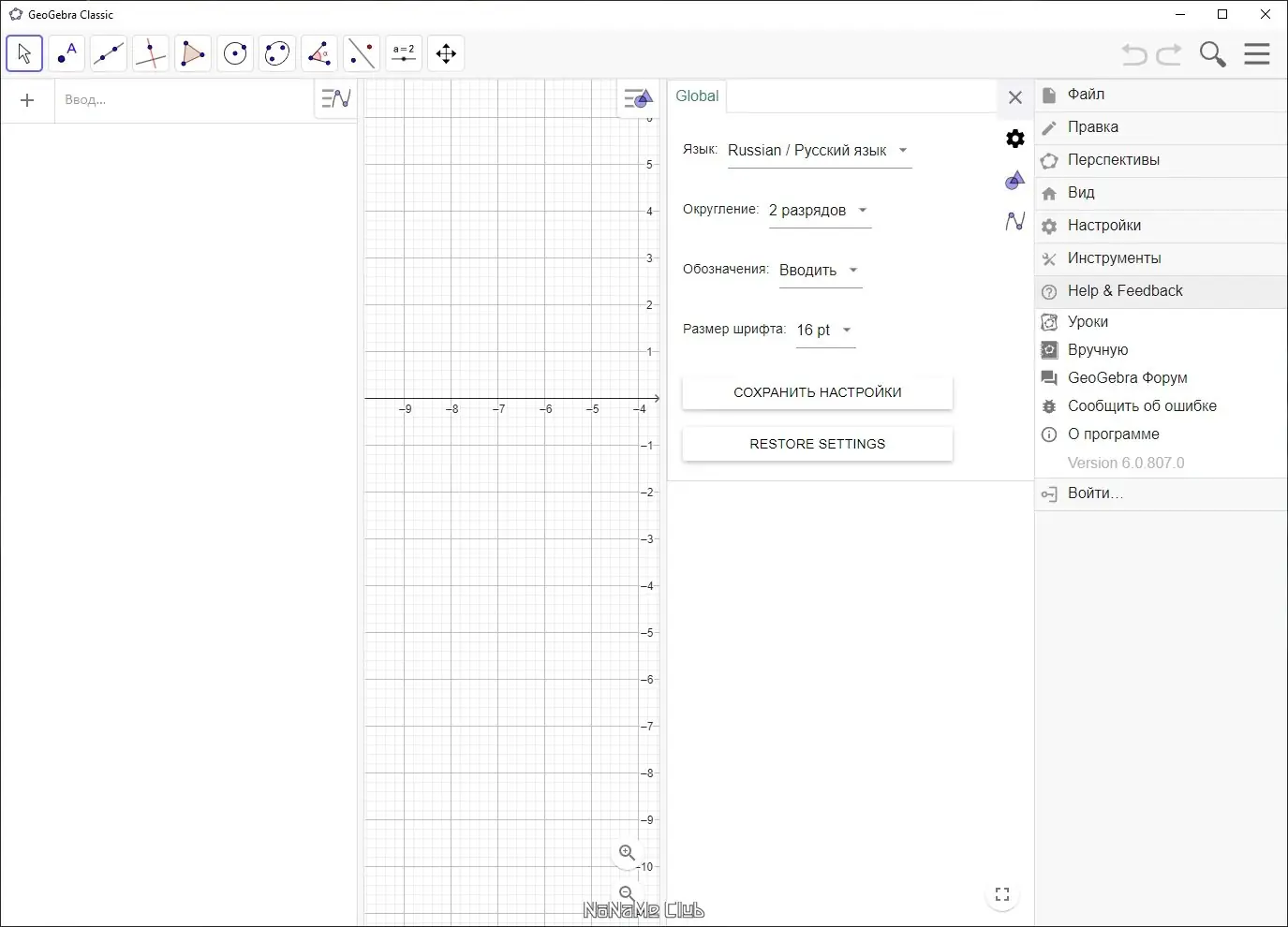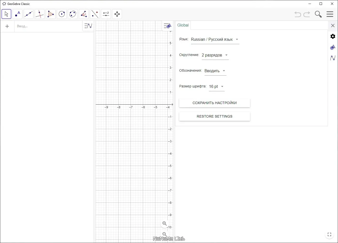 - Загрузка и использование готовых шаблонов в форматах .ggb;