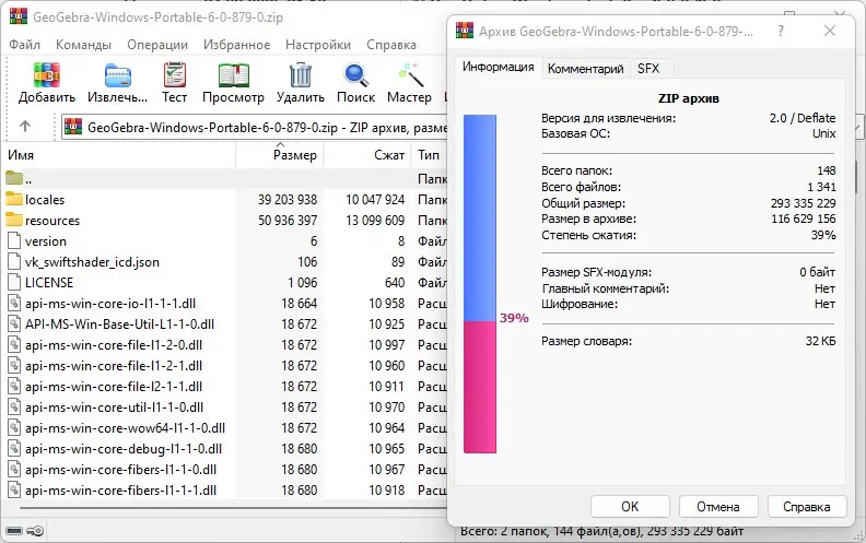 - Скачайте архив с официального сайта, например, файл с названием GeoGebra-Windows-Portable-6-0-879.zip.