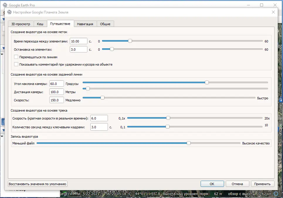 - Некоторые функции доступны только в платной версии Google Earth Pro;