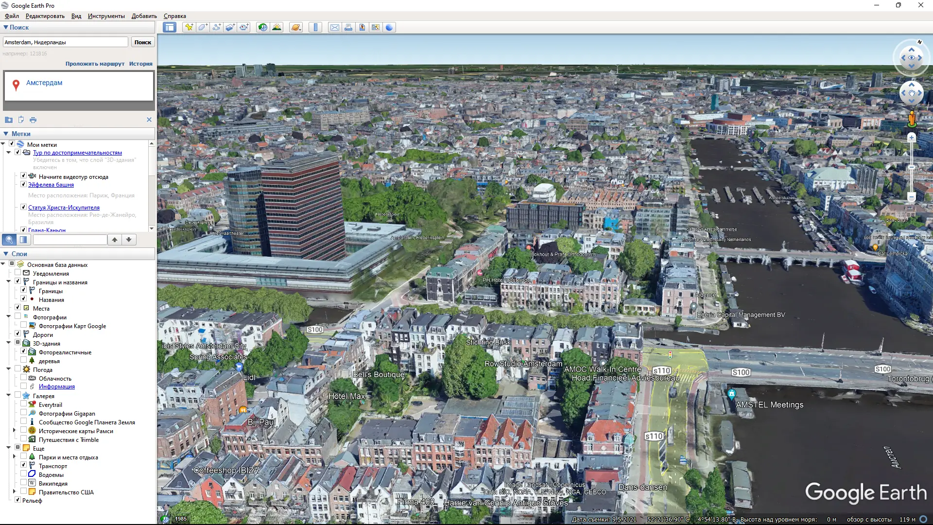 Мир на вашем компьютере — в ваших руках! Google Earth — это мощное приложение для исследования планеты с помощью спутниковых снимков, 3D-моделей и разнообразных информационных слоёв, дающее возможность увидеть Землю в новых деталях и масштабах.