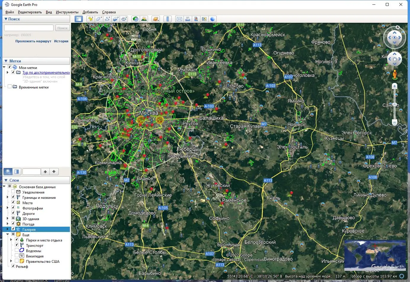 - Создание собственных меток и обмен ими через форум Google Earth Community.