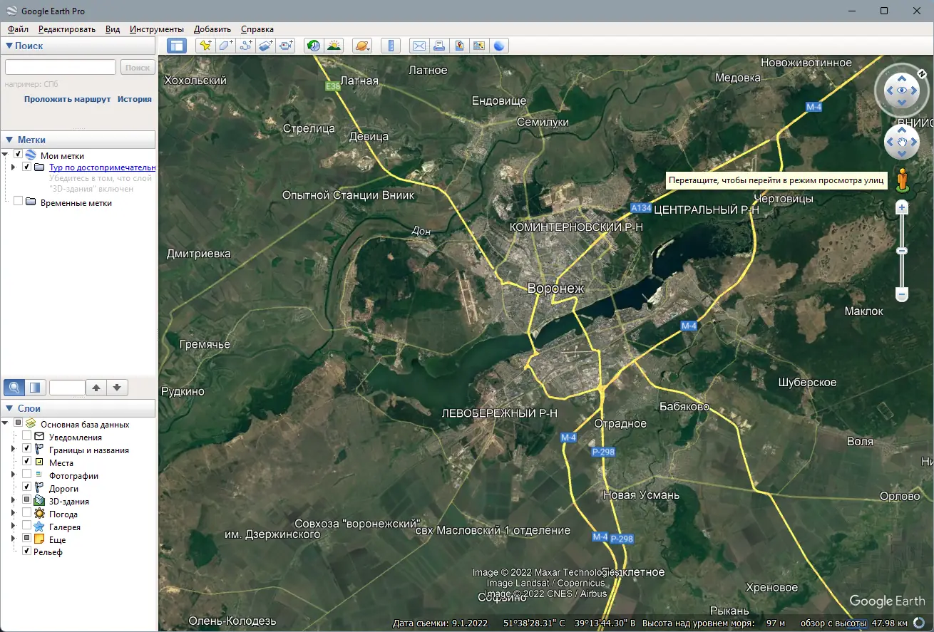 - Высокое качество спутниковых изображений и возможность работы с деталями до уровня улиц.