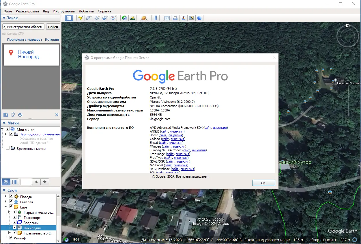 - Создание и обмен пользовательскими метками и изображениями через сообщество Google Earth