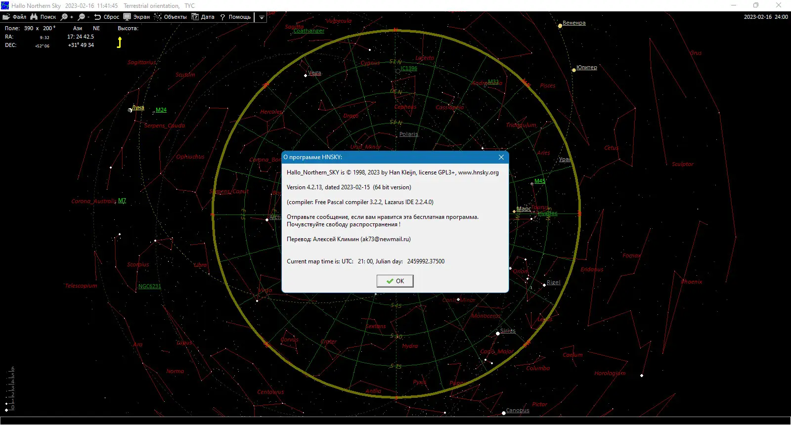 Hallo northern sky — профессиональный планетарий для любителей астрономии и всех, кто интересуется небесными объектами. Эта программа позволяет исследовать звездное небо, просматривать фотографии созвездий и планет, а также получать актуальную информацию о миллионах объектов благодаря интеграции с онлайн каталогами. Простая в использовании и многогранная, она подходит как для начинающих любителей, так и для опытных астрономов.