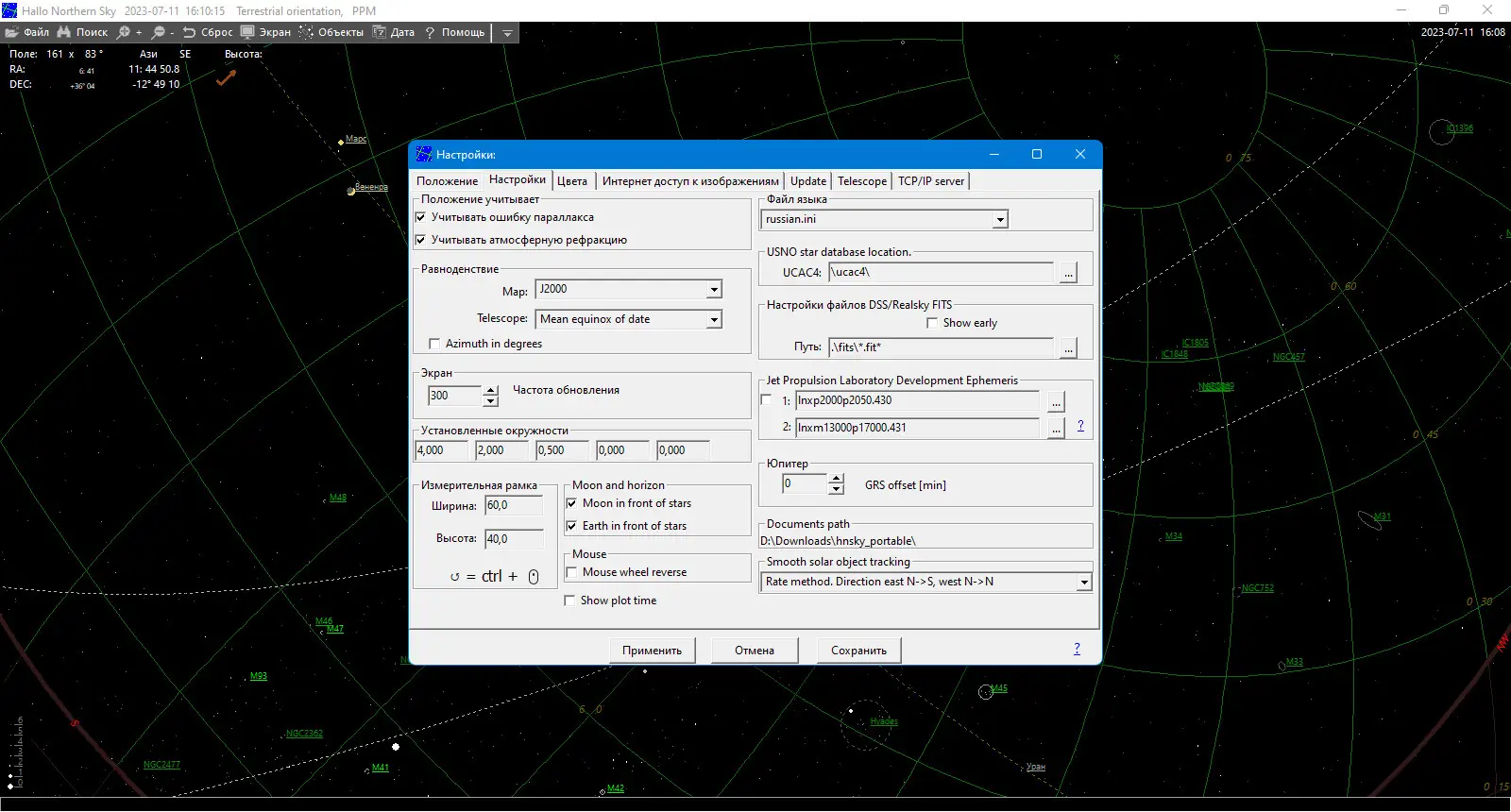 Hallo northern sky — это профессиональный планетарий, предназначенный как для астрономов-любителей, так и для всех, кто интересуется небесными объектами и звездным небом в целом. Программа предоставляет возможность перемещаться по звездному небу, просматривать фотографии созвездий и планет, полученные с помощью телескопов, а также легко загружать данные с онлайн-каталогов одним кликом. Благодаря базе данных, содержащей информацию о более 4.5 миллиона звезд до 12,5-й величины и свыше 30 000 небесных объектов, пользователи могут получать подробные сведения и визуализации, что делает ее мощным инструментом для наблюдений и исследований.