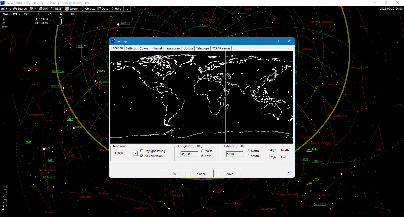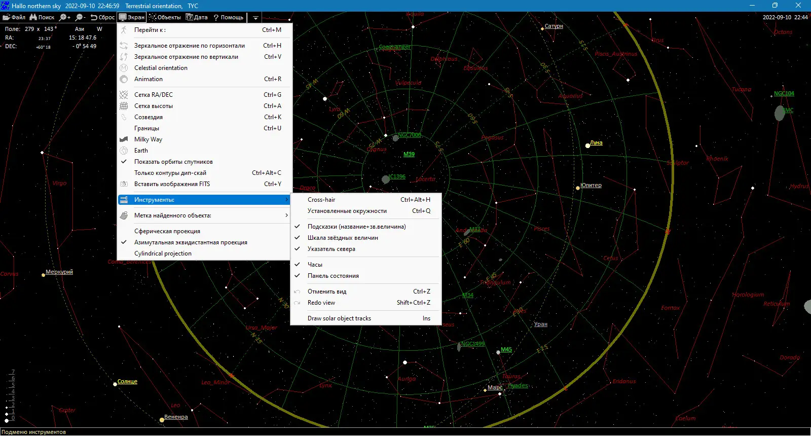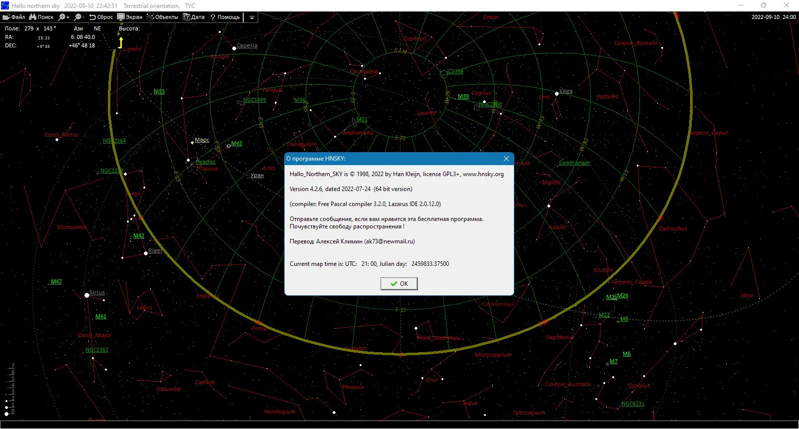Hallo northern sky – это профессиональный планетарий для любителей астрономии и всех, кто интересуется небесными объектами. Программа позволяет перемещаться по звездному небу, просматривать фотографии созвездий и планет, а также получать доступ к обширным онлайн-каталогам с одним кликом. В базе данных содержится информация о более 4.5 миллиона звезд до величины 12,5 и свыше 30 000 объектов неба с возможностью загрузки данных с популярных каталогов типа USNO UCAC4 и GSC 1.2, что позволяет отображать даже звездные объекты до шестнадцатой величины.