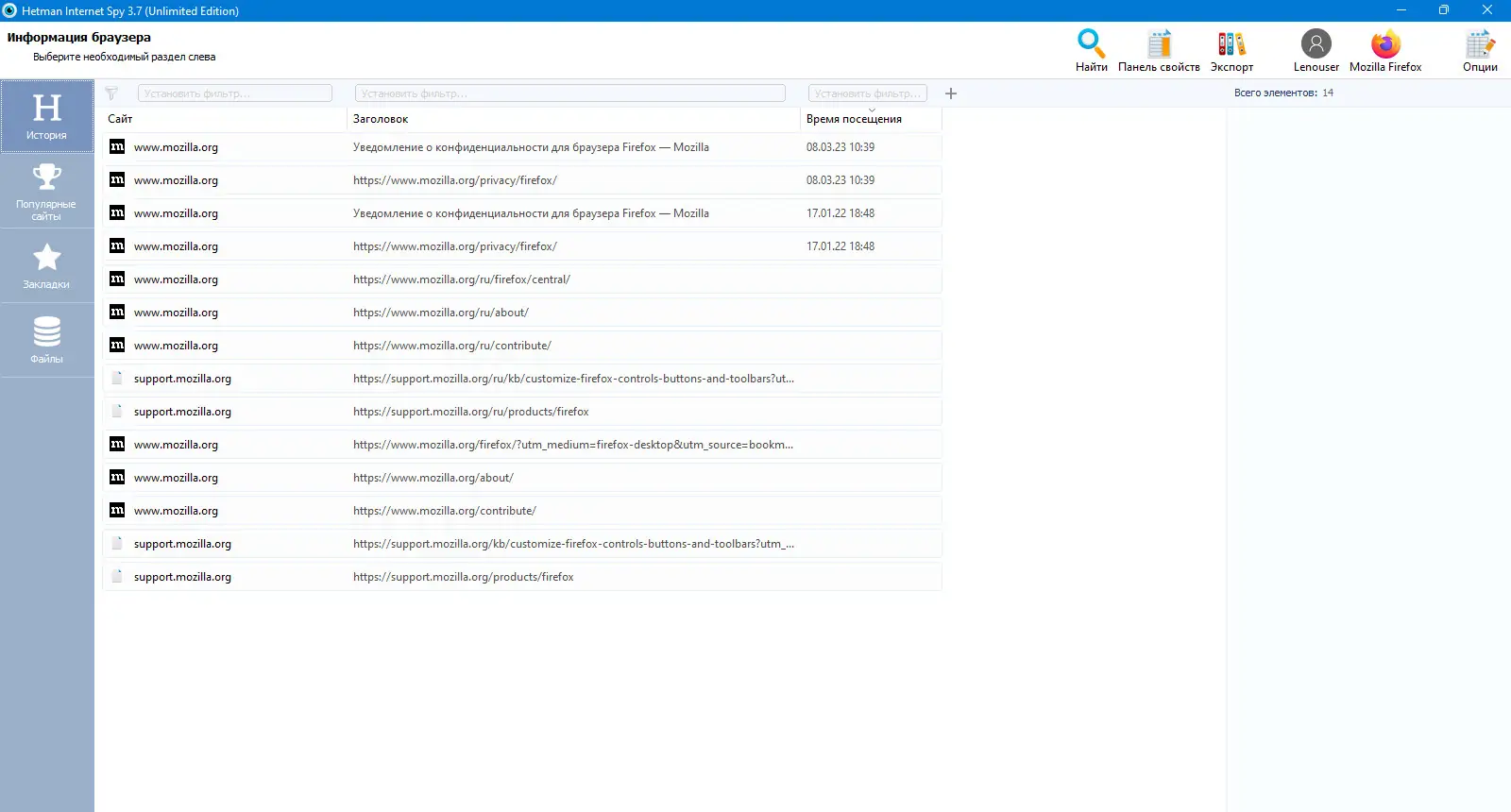 Hetman Internet Spy эффективен для анализа поведения пользователей в сети, восстановления удалённых данных и получения полной картины интернет-активности. Интуитивный интерфейс облегчает работу как неопытным пользователям, так и профессионалам, обеспечивая доступ к скрытому или удалённому контенту. Возможность экспорта отчетов в различные форматы позволяет удобно хранить и анализировать полученные сведения. Это незаменимый инструмент для служб безопасности, криминалистов и контролирующих родителей.